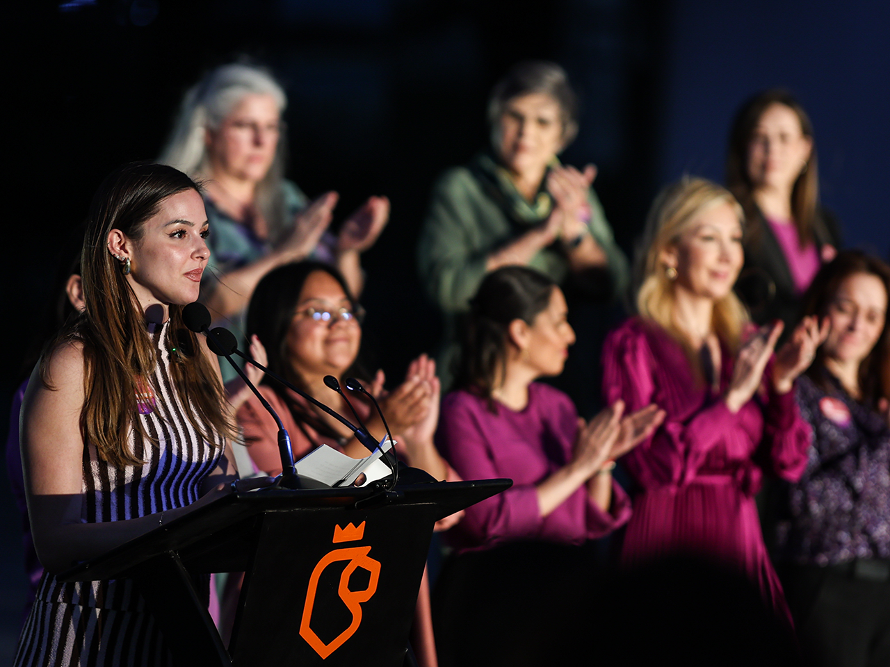 “Las mujeres ya no vamos detrás. Las mujeres vamos al frente. Y en Nuevo León las mujeres vamos hacia adelante, con decisión, con valentía y con mucha fuerza”, señaló.