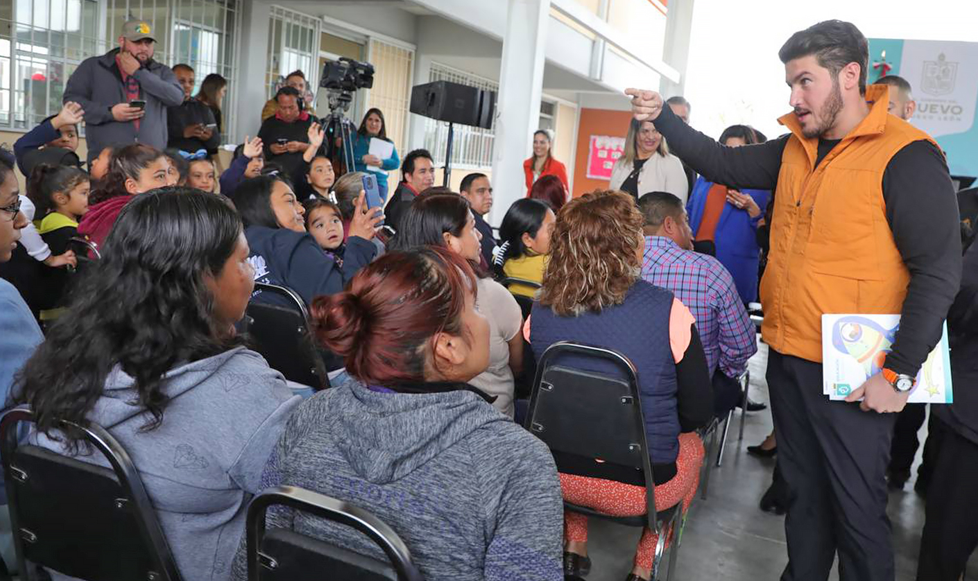 Acompañado de la Secretaria de Educación, Sofialeticia Morales Garza y del director del Instituto Constructor de Infraestructura Física, Educativa y Deportiva de Nuevo León, Javier Martínez Lankenau, el Gobernador señaló que nunca más en Nuevo León un niño o una niña vayan a una escuela no digna, a una escuela móvil o una escuela que le falta infraestructura, poniendo énfasis en los municipios periféricos de ultracrecimiento como Pesquería.
