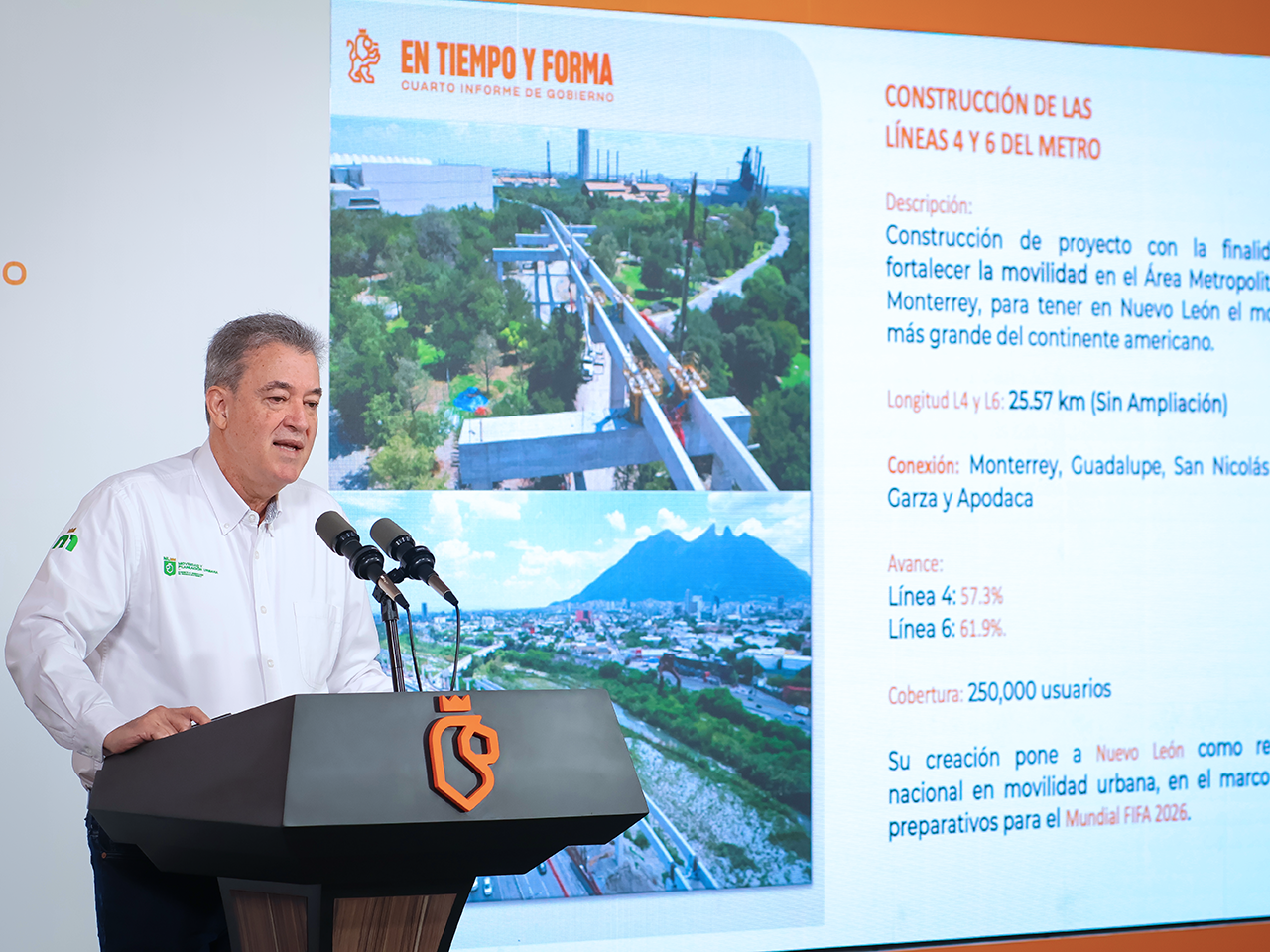 “No hay obra de transporte más grande en México y en el continente que la ampliación de las líneas 4 y 6 del Metro en Monterrey”, aseguró.