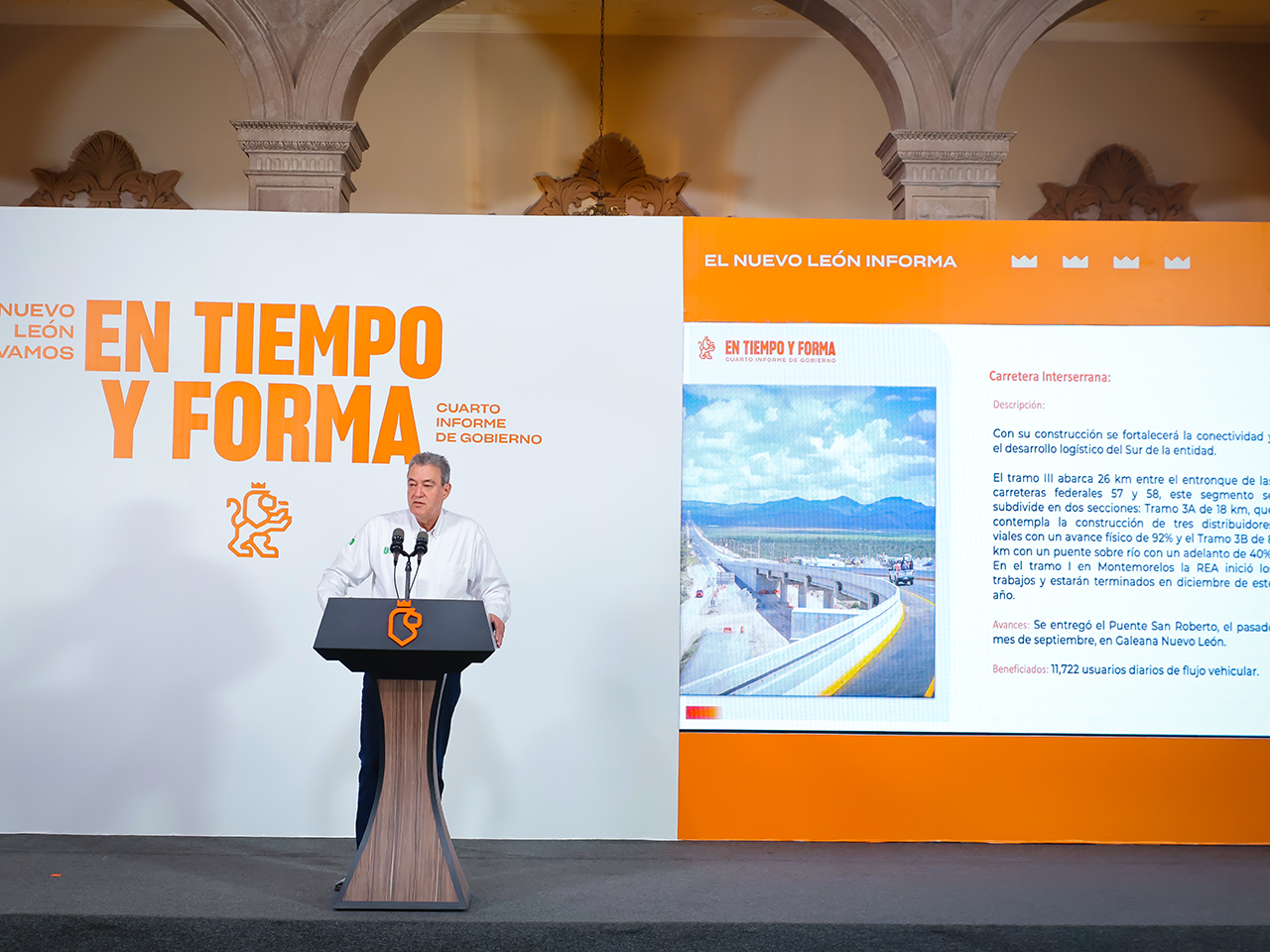 El estado también avanza en infraestructura estratégica con la Carretera Interserrana, que conectará la zona sur con la metrópoli y el centro del país, beneficiando a más de 11 mil vehículos diarios y potenciando el comercio internacional.