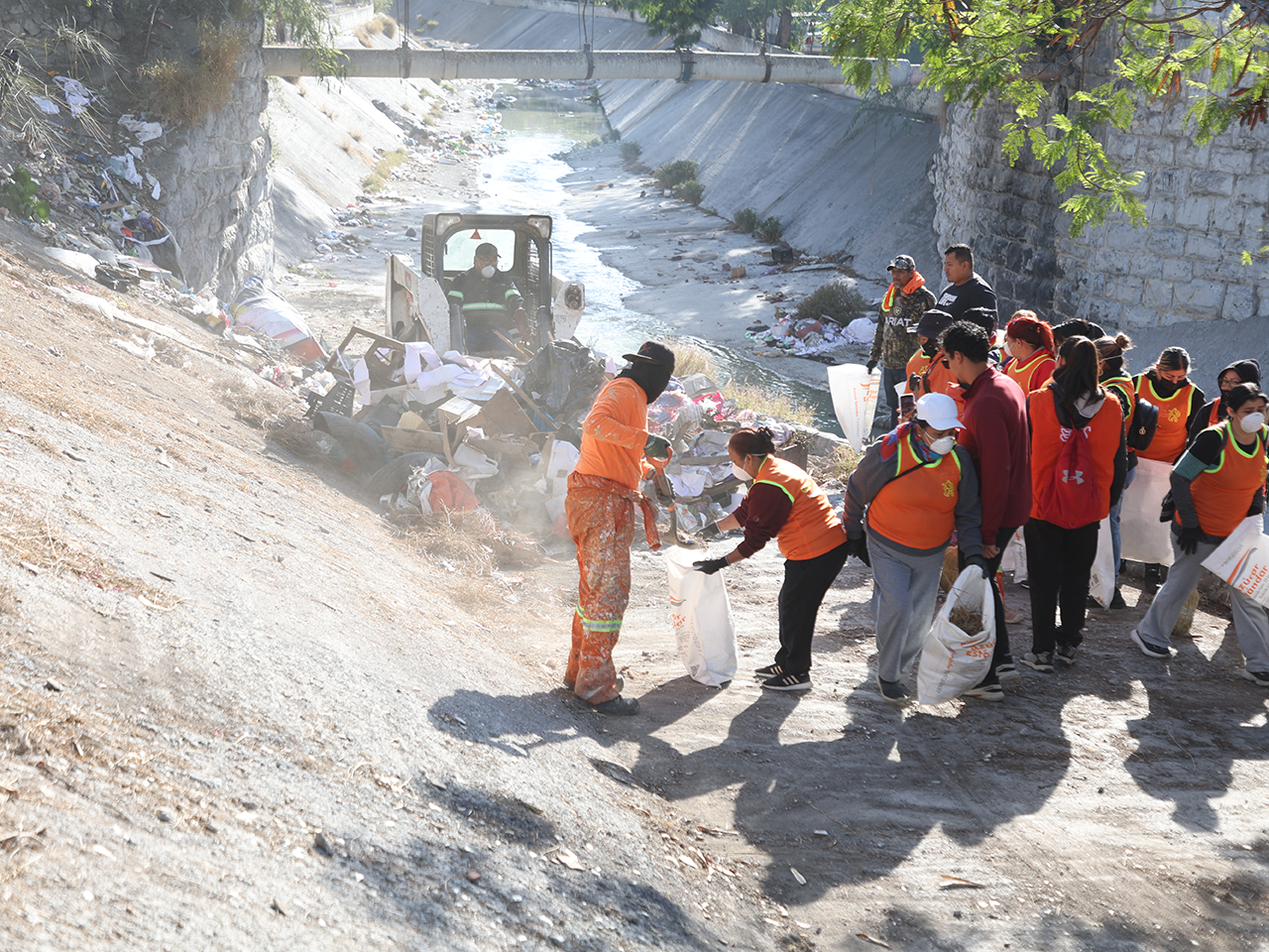 Monterrey, Nuevo León.- Como parte del rescate de espacios públicos y el programa “Ponte Nuevo”, el voluntariado de la Secretaría de Participación Ciudadana realizó la primera jornada de limpieza del Arroyo Topo Chico, en Monterrey.