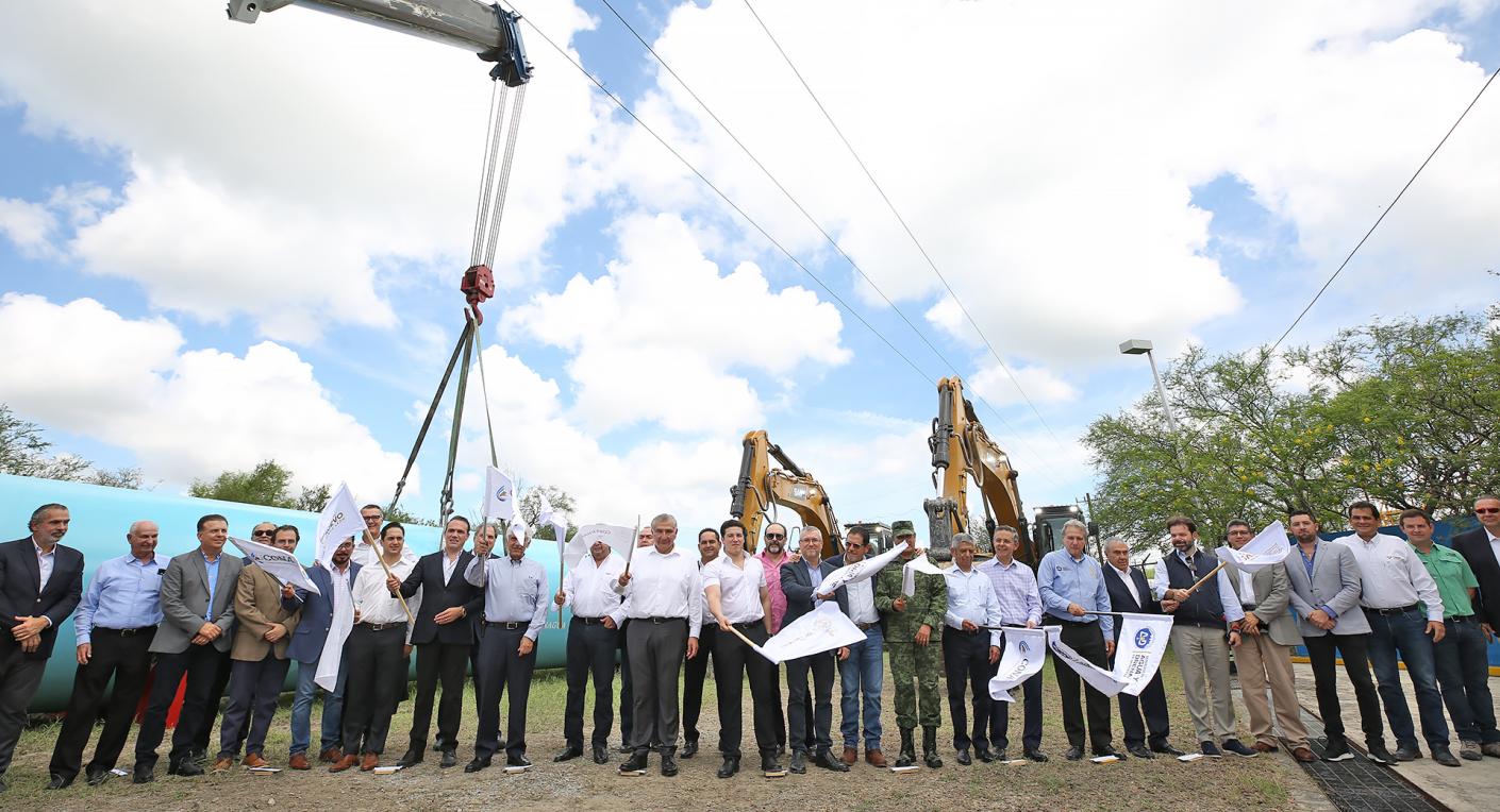 Participaron en el banderazo de arranque de obra Juan Ignacio Barragán, director de Servicios de Agua y Drenaje de Monterrey; Germán Martínez, director de CONAGUA; el General Norberto Cortés, Comandante de la IV Región Militar.