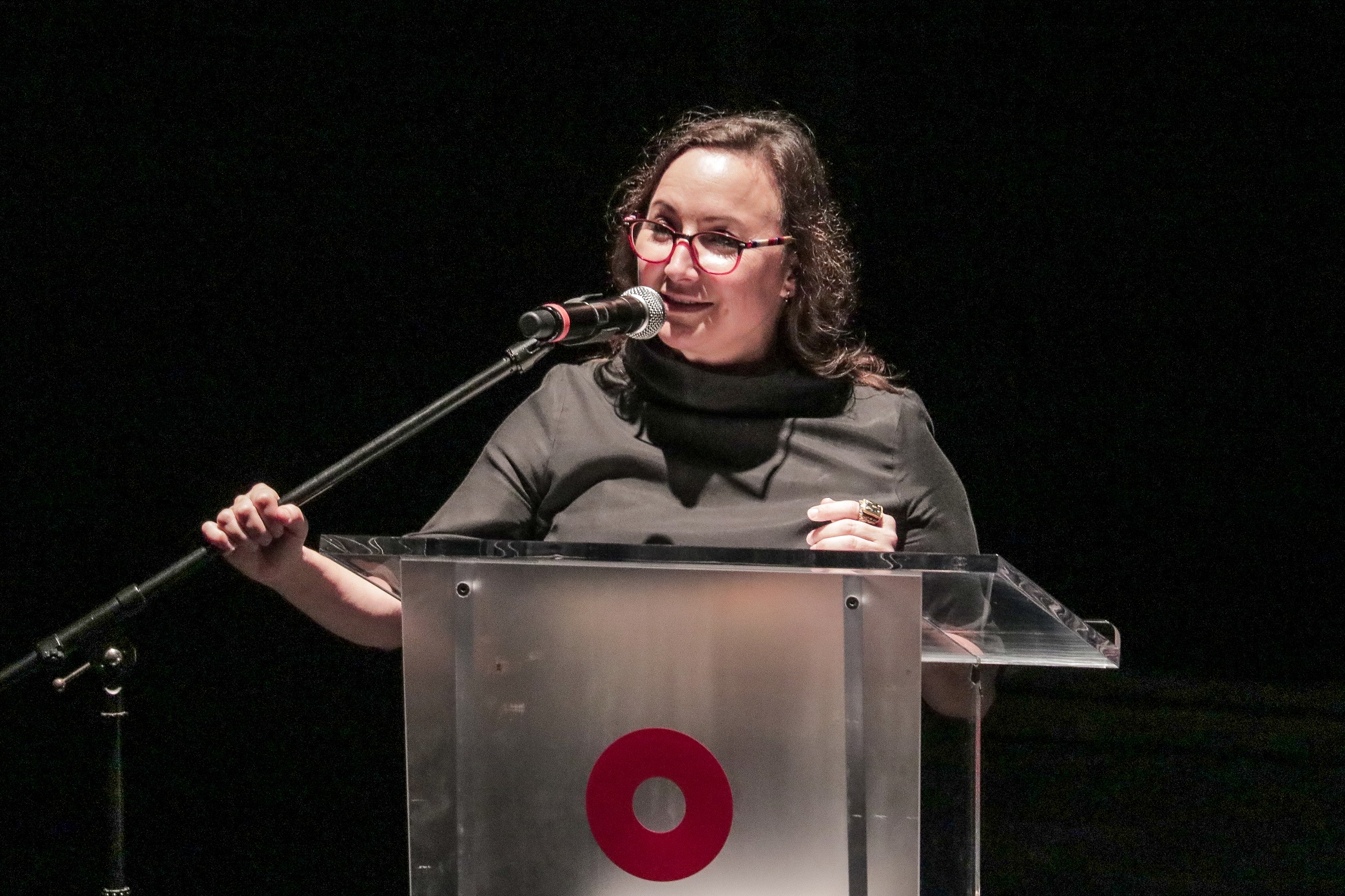 “El teatro hoy está más vivo que nunca”, manifestó Anguiano, en su turno al micrófono en el pódium.