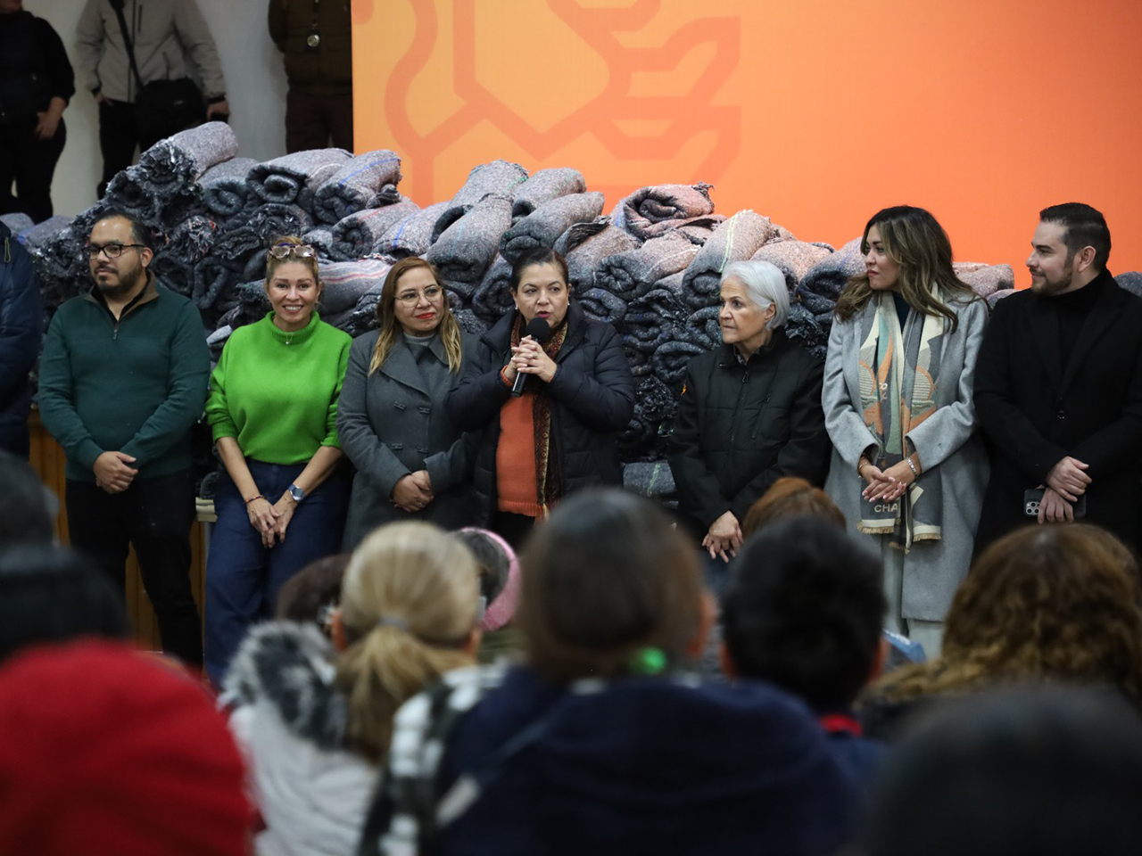 Durante el evento, que se llevó a cabo en la Unidad de Servicios Familiares de la colonia Independencia, la Directora Gloria Bazán supervisó la entrega directa de cobijas y agua embotellada a personas en situación de vulnerabilidad que habitan en zonas de riesgo.