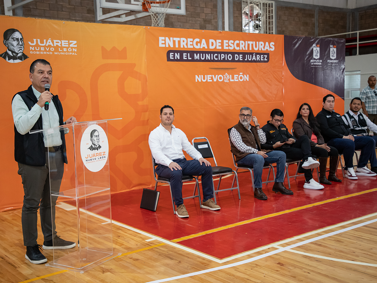 - Así mismo, el Director General del Instituto de la Vivienda de Nuevo León, Eugenio Montiel Amoroso retó al Presidente Municipal, Félix Arratia para entregar 3 mil escrituras a las familias de Juárez que faltan.