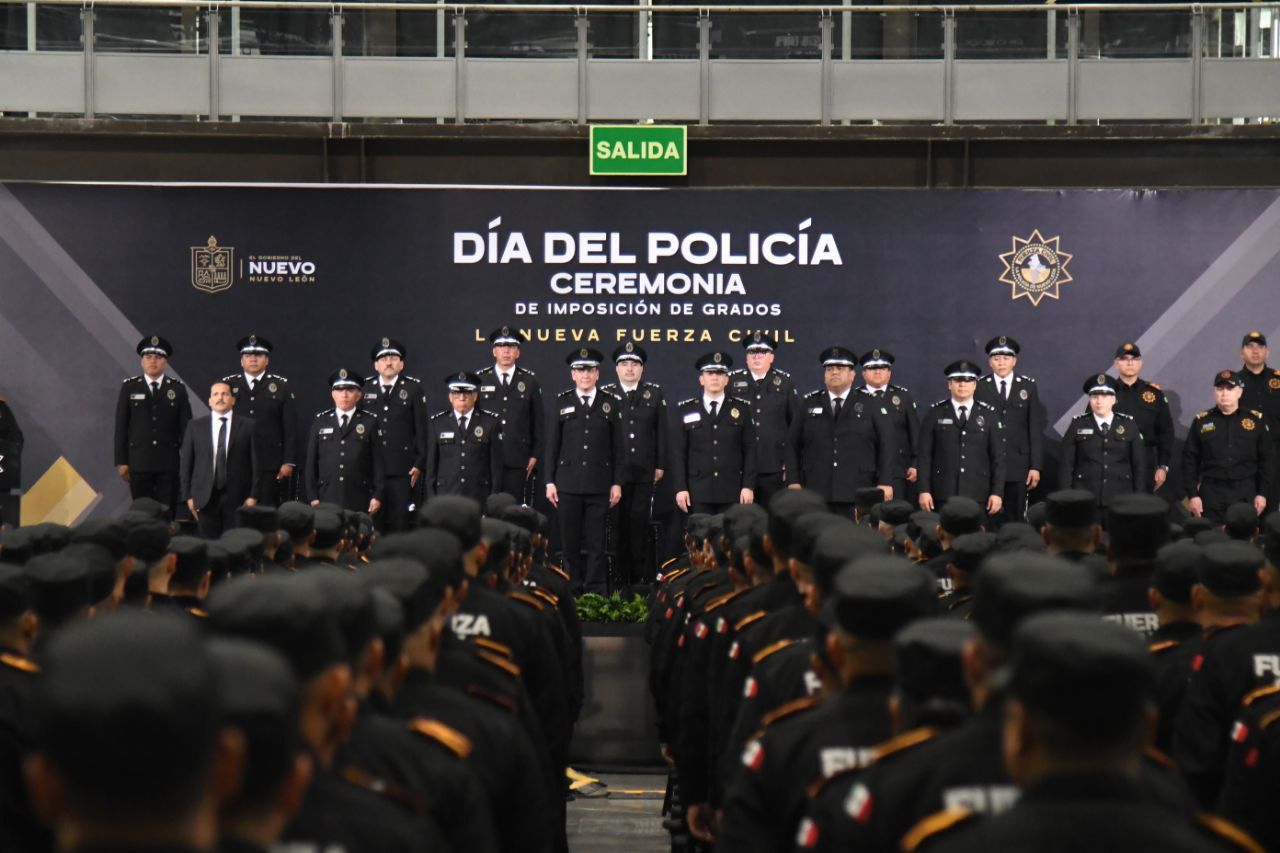 Monterrey, Nuevo León.- En el marco del Día del Policía y en honor a su deber de Proteger y Servir a Nuevo León, el titular de Fuerza Civil, Gerardo Escamilla Vargas entregó ascensos a más de 500 elementos de esta institución policial.