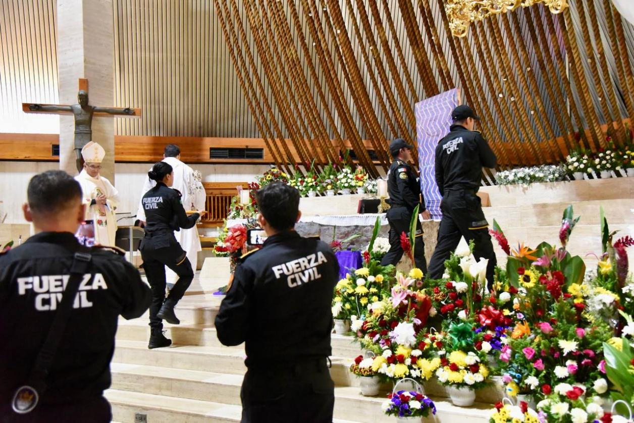 Por una hora, los efectivos permanecieron en la misa de las 08:00 de la mañana en la que oraron por sus compañeros caídos y por los que día a día luchan por mantener la paz en nuestro Estado.