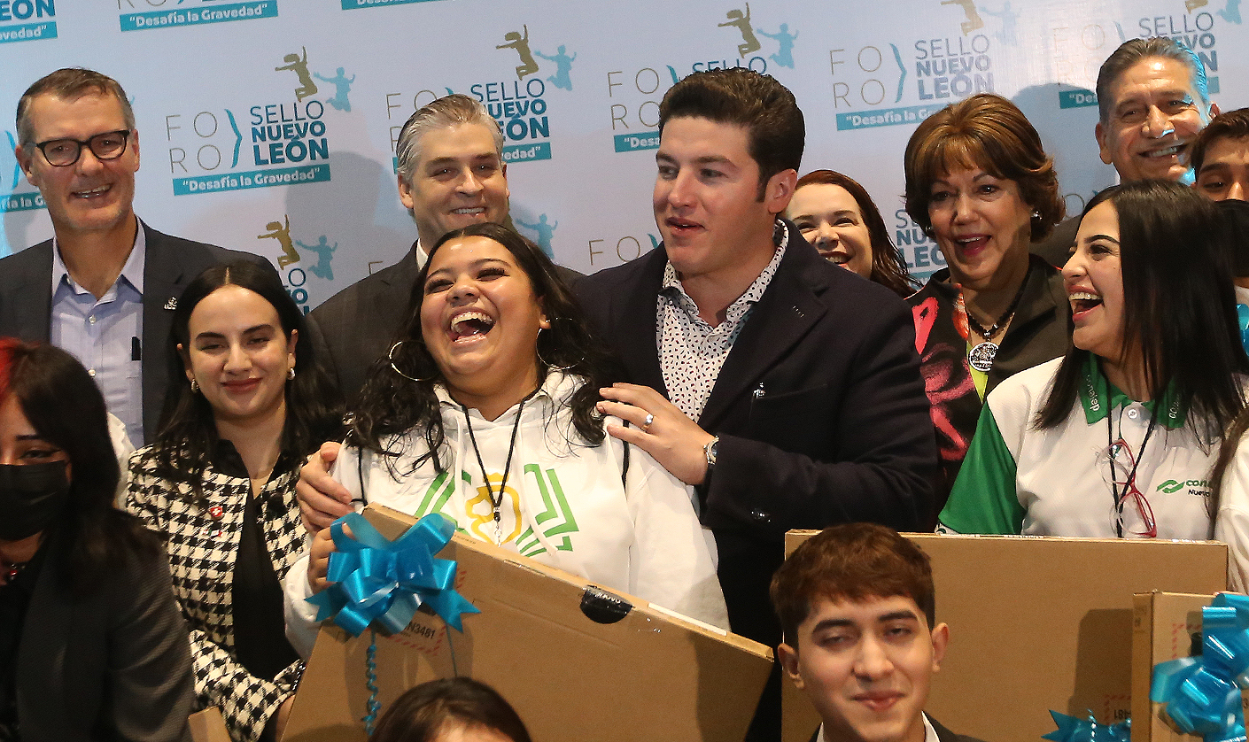 El Gobernador de Nuevo León, Samuel Alejandro García Sepúlveda encabezó la entrega de más de mil computadoras a jóvenes que forman parte del Programa de Educación Dual, tras inaugurar el Foro "Sello Nuevo León: Desafiando la Gravedad", un ciclo de conferencias en el que participaron estudiantes, docentes y directivos de instituciones públicas de educación media superior y superior, así como representantes de la iniciativa privada.