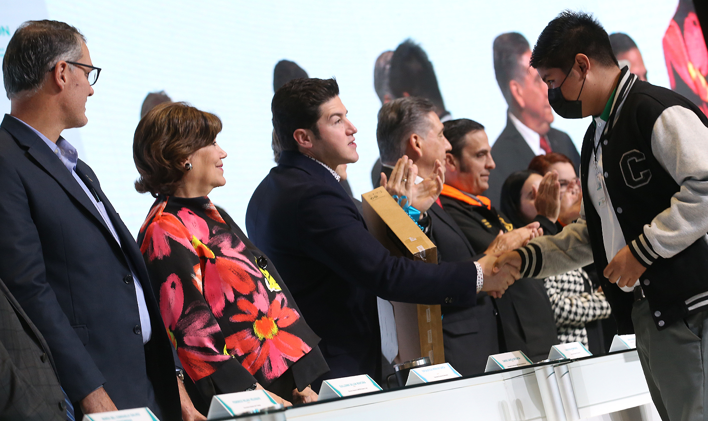 “Hoy lo que queremos hacer aquí es un símbolo de cómo sí Nuevo León puede poner el ejemplo para que todos ustedes ya nos quitemos ese tabú de que somos el futuro, no señor, somos el presente, somos mayoría y queremos oportunidades y herramientas, por eso hoy regalamos con mucho gusto computadoras para que puedan trabajar y estudiar al mismo tiempo”, precisó ante la presencia de jóvenes estudiantes del CECyTE y Conalep.