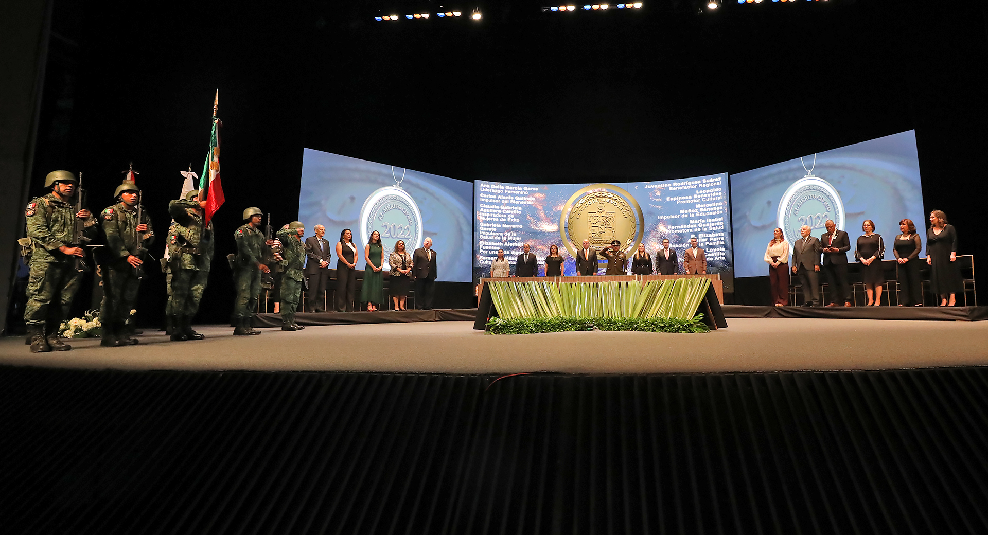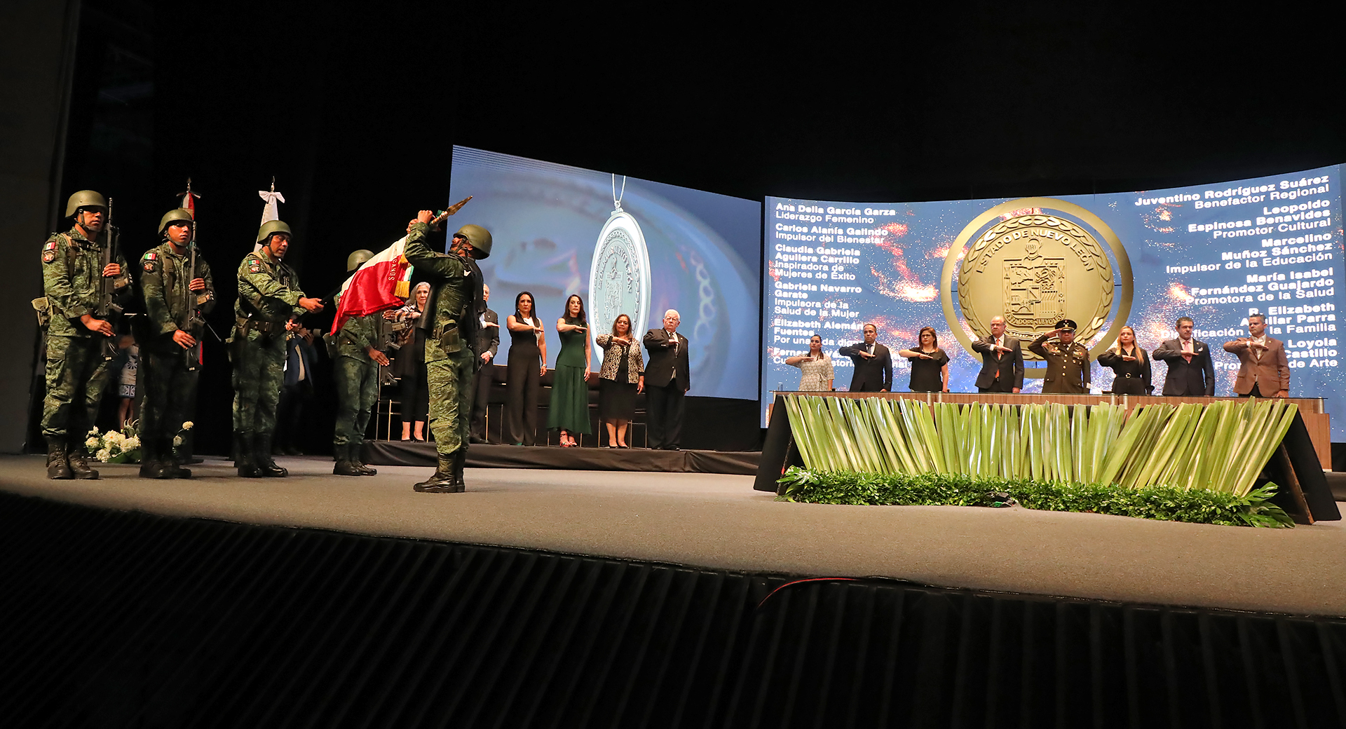“En este día tan especial, nos reunimos a honrar a estos ciudadanos y ciudadanas extraordinarios que han dejado una huella profunda en el Estado Nuevo León, con gran orgullo, entregamos las medallas, el mérito cívico a aquellas mujeres y hombres destacados en el desarrollo económico, asistencia social, cultura, educación, deporte, a ustedes protagonistas del progreso y la solidaridad, les expresamos nuestras más sinceras de admiración por su esfuerzo incansable y dedicación que han impulsado el crecimiento y bienestar de nuestra comunidad”, expresó ante los invitados reunidos en la Gran Sala del Teatro de la Ciudad.
