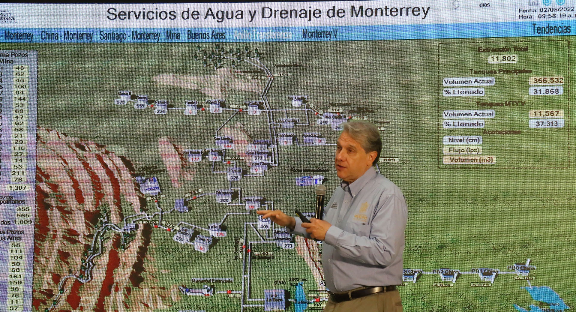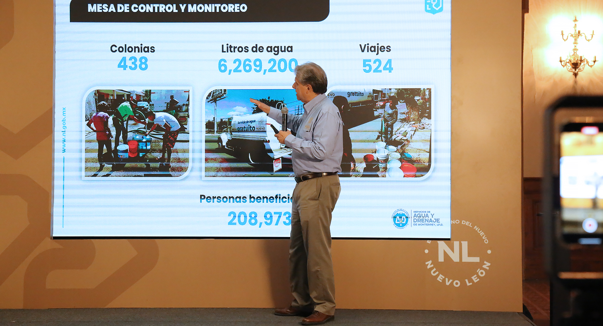 En la rueda de prensa Nuevo León Informa, el funcionario estatal, indicó que se ha tenido un avance importante en el suministro del vital líquido, luego de la incorporación de agua de El Chapotal, la modulación de presiones y el funcionamiento al 100 por ciento del Sistema de Pozos Mina.