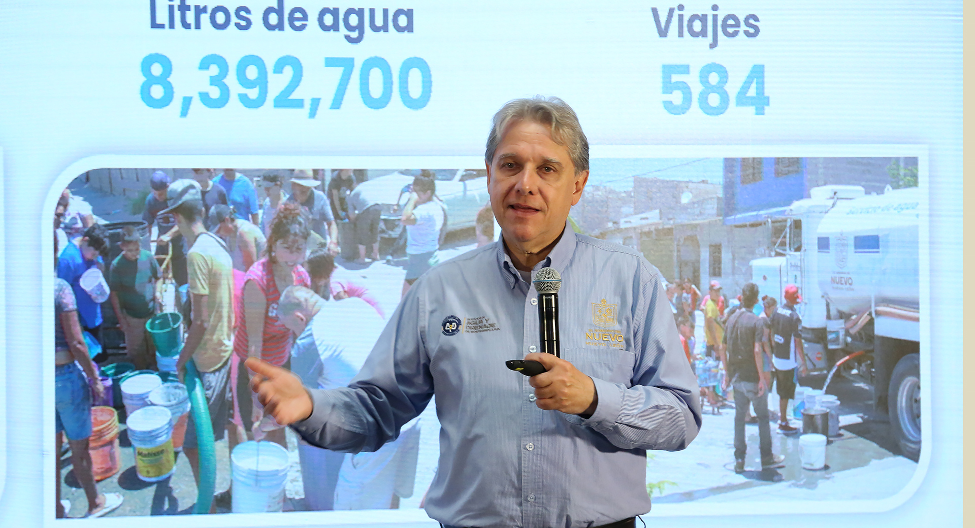 Finalmente, se dio a conocer que la Mesa de Control y Monitoreo distribuyó en el último corte 8 millones 392 mil 700 litros de agua en pipas, a 457 colonias de 15 municipios metropolitanos y de la periferia. El número de personas beneficiadas fue de 279 mil 757. En tanto los municipios con más solicitudes de pipas fueron García con 151, Monterrey con 87, Escobedo con 65 y Guadalupe con 42.