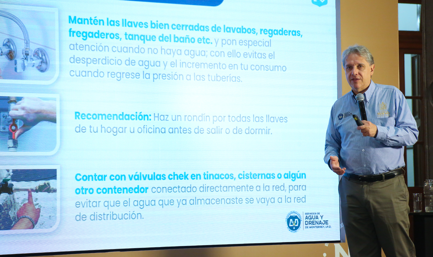 Finalmente, el Director General de AyD puso de ejemplo a países como Israel y estados como Arizona que son muy exitosos económicamente como Nuevo León, pero con menor cantidad de lluvias; detalló que la sociedad nuevoleonesa debe adoptar buenas y nuevas prácticas en la cultura del agua, emular las que sean propicias, para que así podamos adaptarnos al cambio climático.