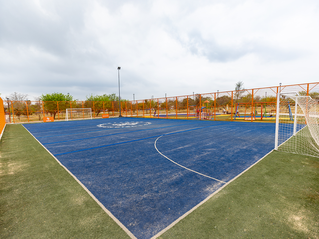 Durante la entrega de la primera etapa del Parque Libertad, el Mandatario estatal jugó una cascarita en la nueva cancha con funcionarios estatales y vecinos de la zona.