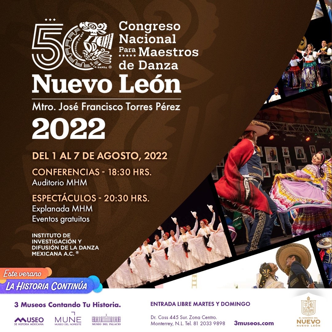Del 1 al 7 de agosto se desarrollará el L Congreso Nacional de Maestros de Danza -Nuevo León- Mtro. José Francisco Torres Pérez del Instituto de Investigación y Difusión de la Danza Mexicana, A.C. ® con 32 delegaciones que, a través de la danza, representarán las tradiciones y costumbres de sus lugares de origen.