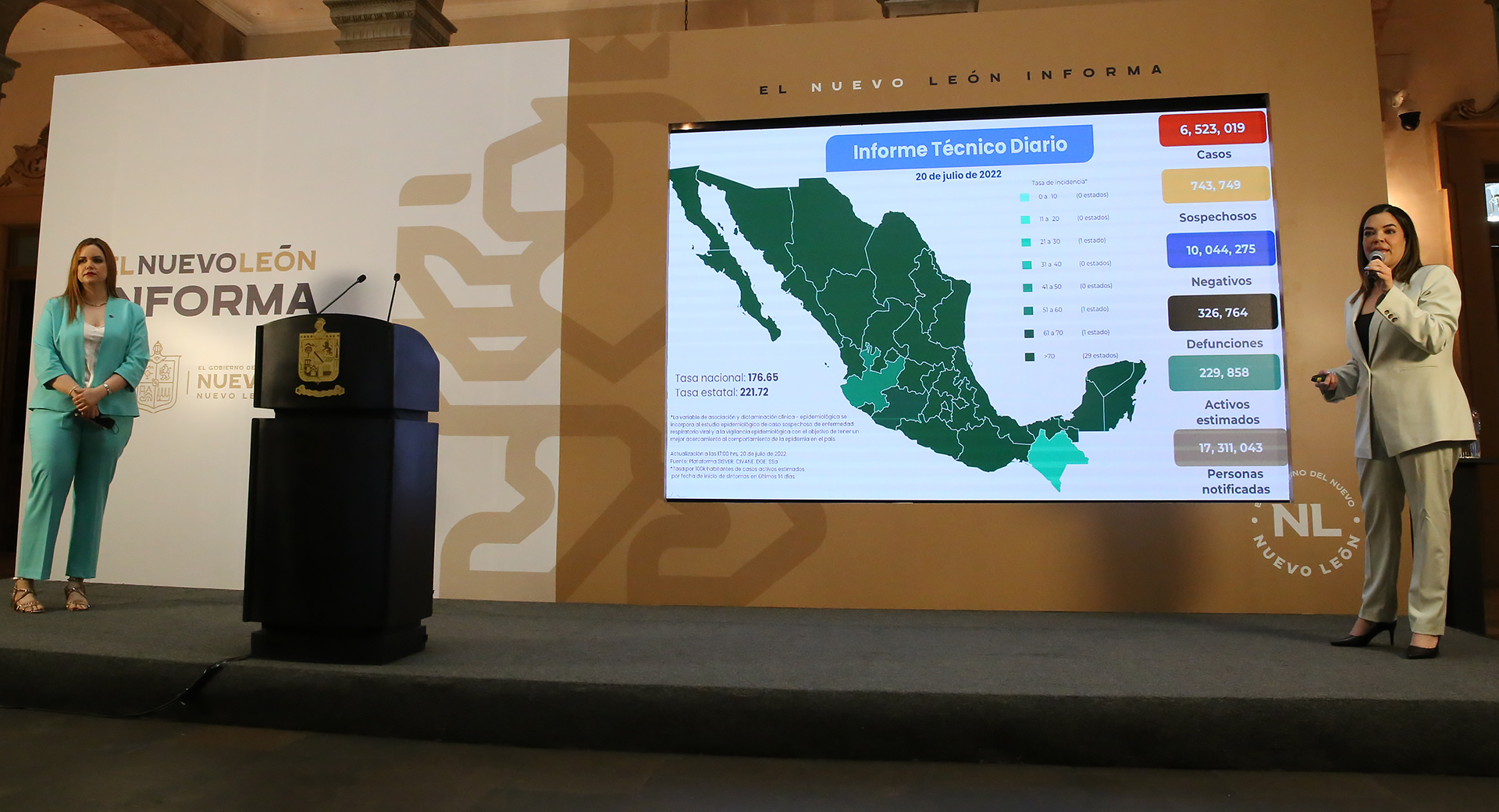 Al corte del 20 de julio se registraron 3 mil 362 nuevos casos, para un acumulado de 574 mil 648 casos; 6 nuevas defunciones, 16 mil 394 en total; y 210 personas hospitalizadas, de las que 22 están conectadas a un ventilador mecánico.