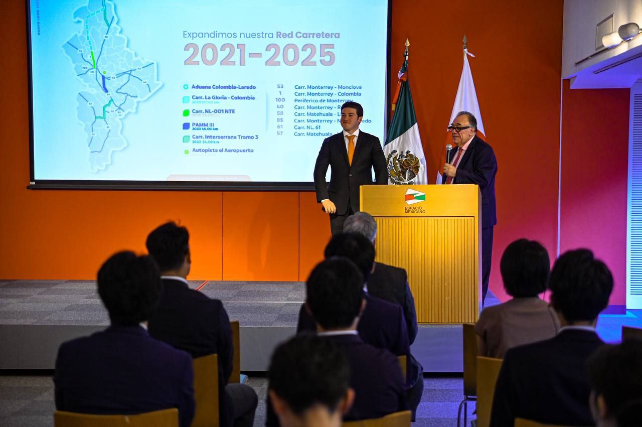 El Mandatario estatal sostuvo además un encuentro con empresarios nipones a quienes mostró los proyectos de infraestructura que se realizan en Nuevo León para una mayor conectividad como el Periférico, las carreteras la Gloria-Colombia; la Interserrana; la autopista al Aeropuerto, y la Aduana del Puerto Fronterizo Colombia.