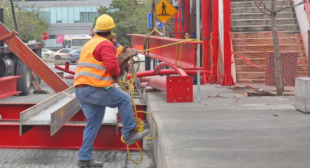 En el Centro de Transferencia "Avenida Pablo Livas y Avenida Israel Cavazos", se está interviniendo la zona y se está realizando la colocación de una estructura de acero para recibir el techado con membrana en 4 módulos y zonas peatonales, con una inversión proyectada de 9 millones 200 mil pesos.