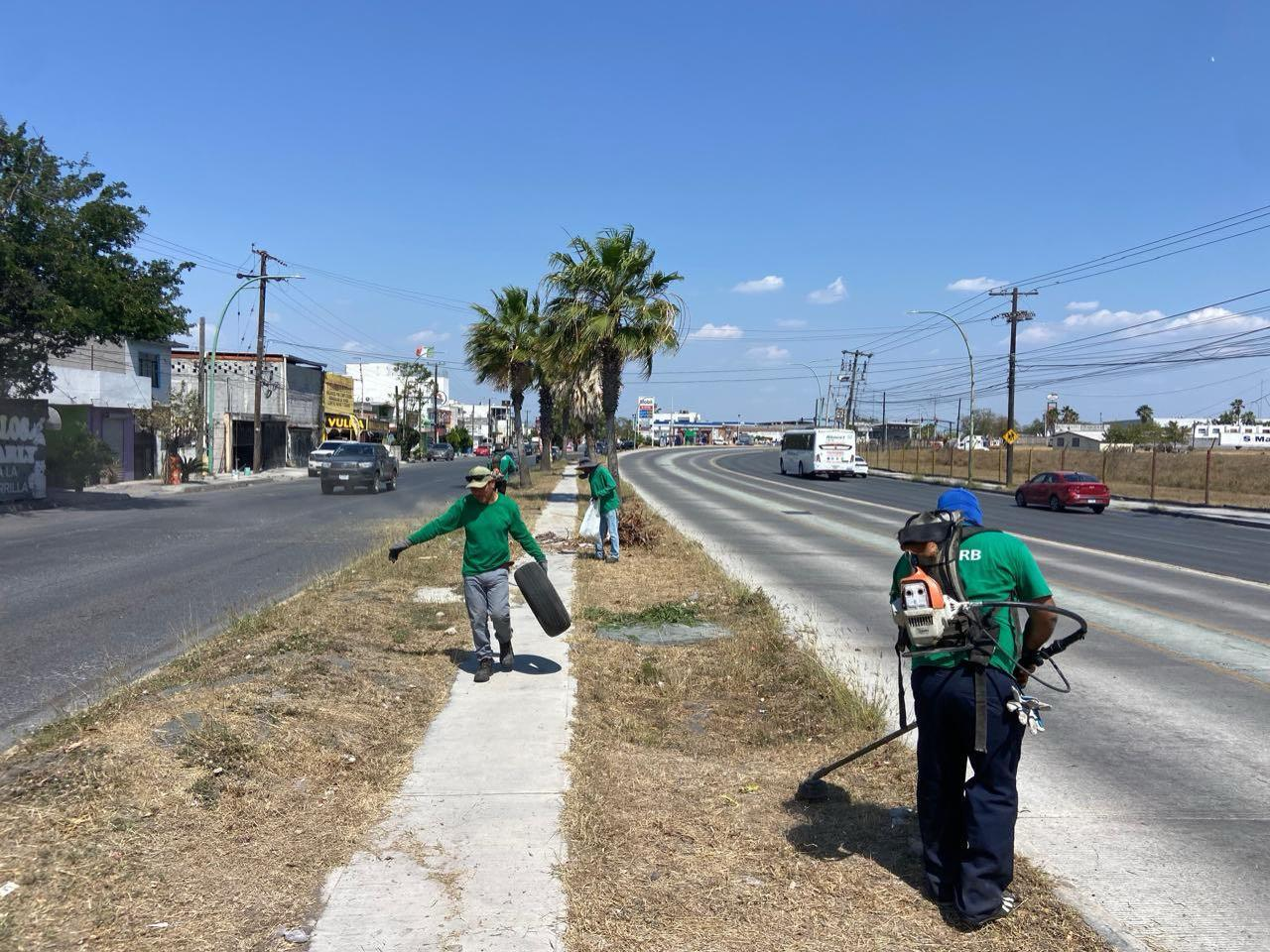 Aprovechando el periodo vacacional de Semana Santa, las brigadas trabajan de manera estratégica en corredores verdes del municipio de Guadalupe, así como en importantes arterias viales como Constitución, Eloy Cavazos, Las Américas, Cristóbal Colón y Félix U. Gómez.