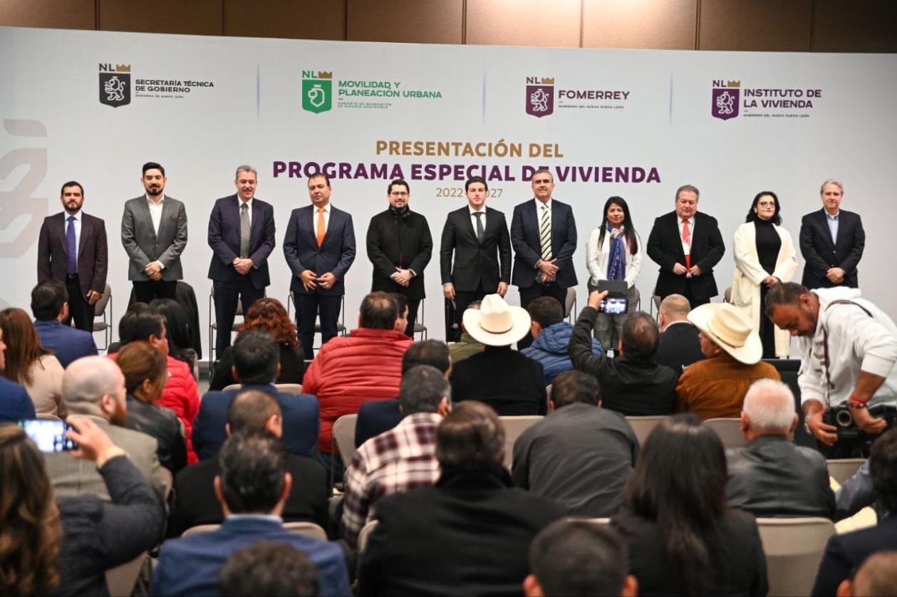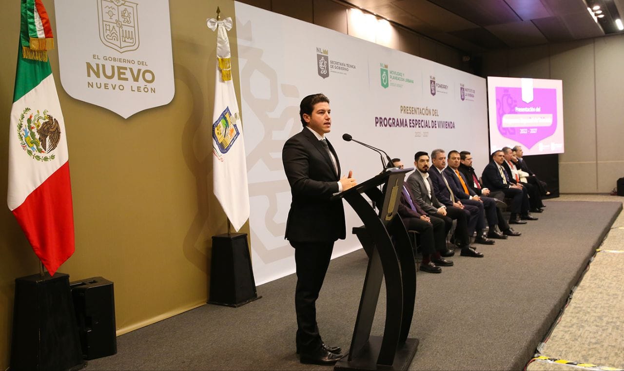 Monterrey, Nuevo León.- En la presentación y firma de la publicación del Programa Especial de Vivienda 2022-2027, el Gobernador Samuel Alejandro García Sepúlveda dijo que el Gobierno del nuevo Nuevo León se declara listo para revertir la falta de vivienda en la entidad.