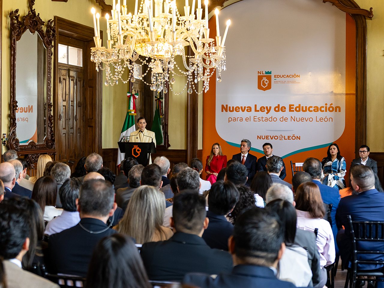 - “Esta nueva Ley de Educación es sin duda referente nacional. no existe ningún otro Estado que vaya a tener la normativa que hoy publica Nuevo León”, dijo el Gobernador.
