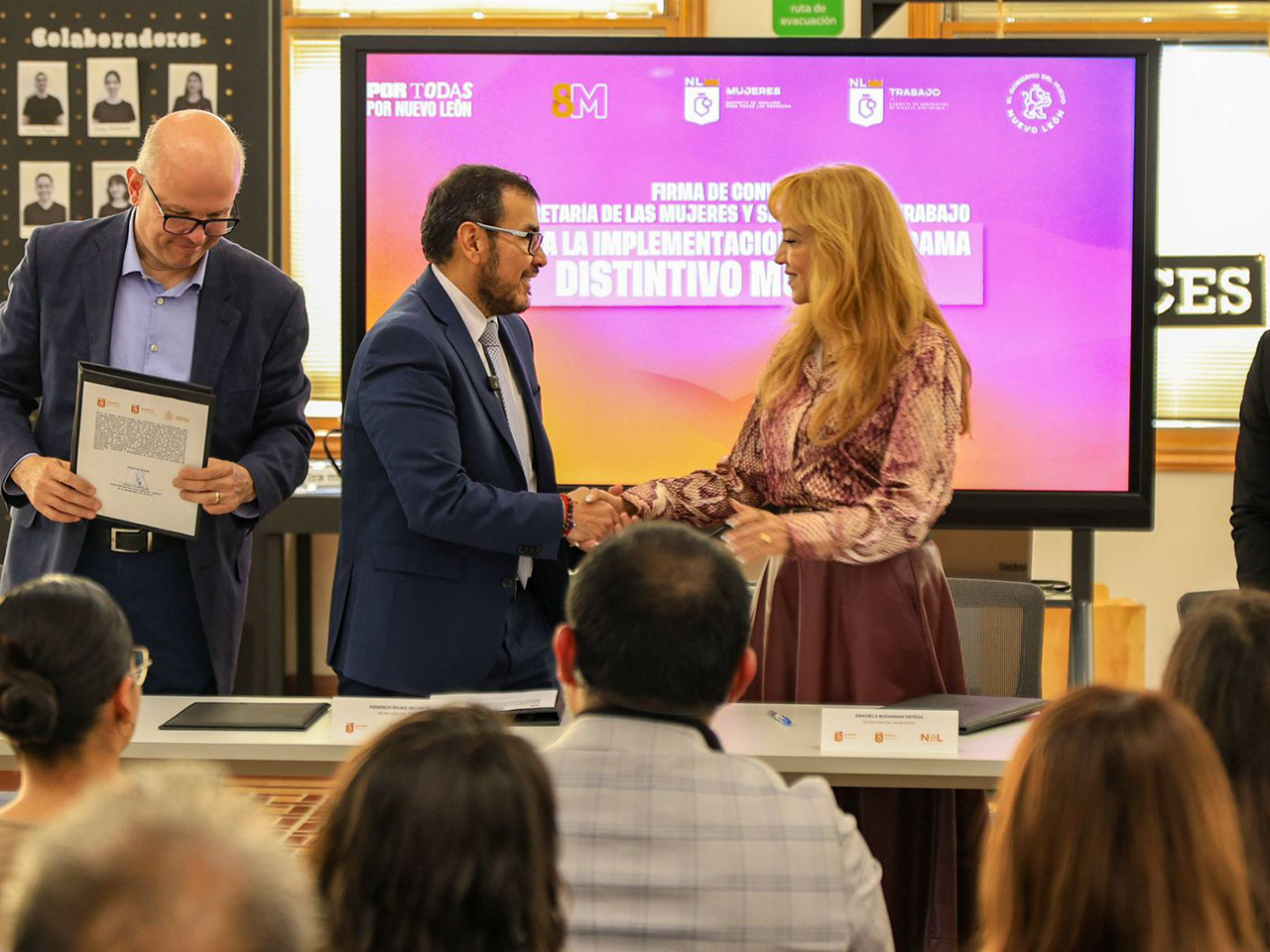 Monterrey, Nuevo León.- La Secretaria de las Mujeres y la Secretaría del Trabajo de Nuevo León firmaron un convenio de colaboración que permitirá otorgar un reconocimiento institucional denominado “Distintivo Mujeres” a empresas  que prevengan y atiendan las violencias en contra de las mujeres.