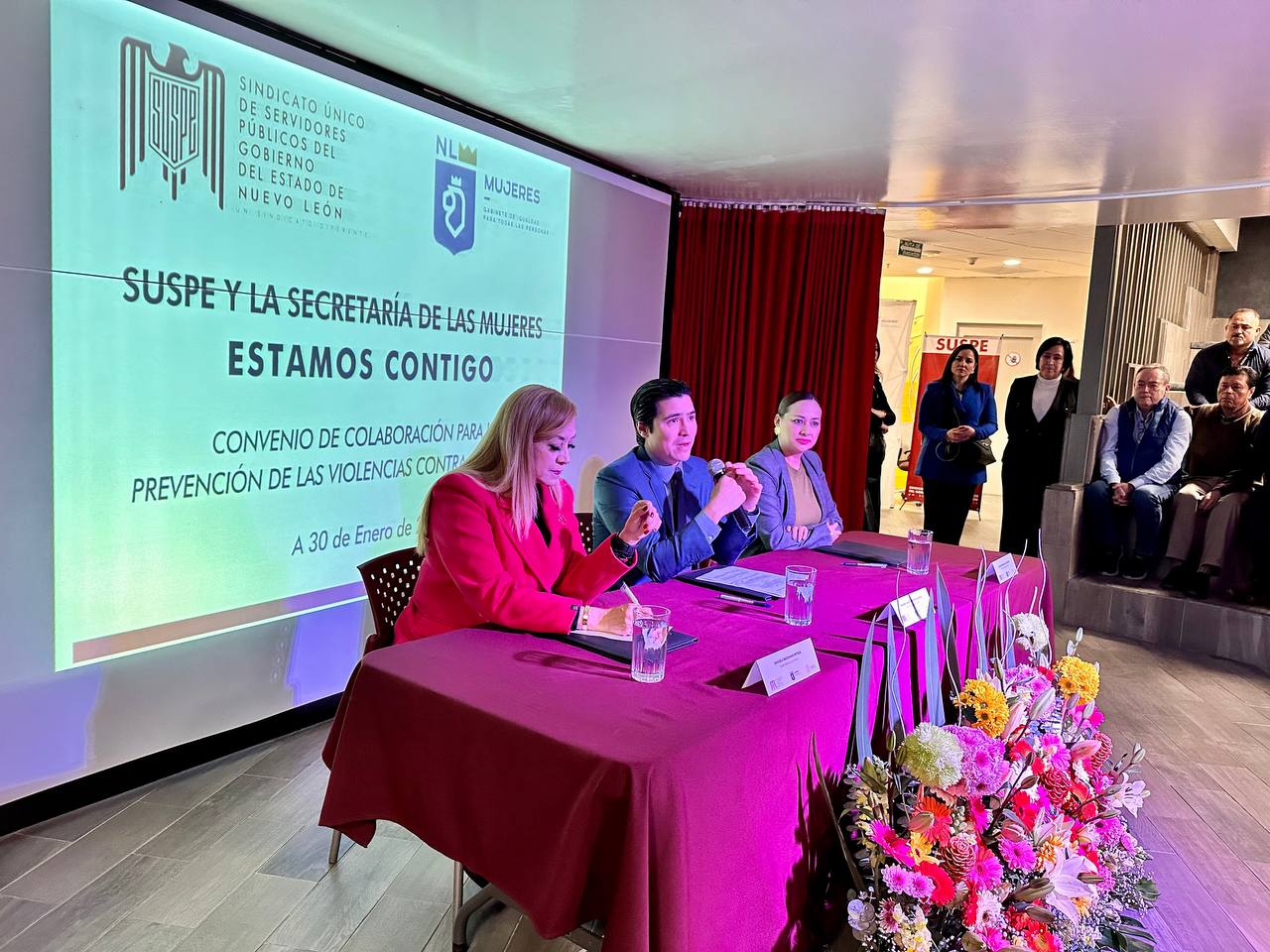 Monterrey, Nuevo León.- La Secretaría de las Mujeres y el Sindicato Único de Servidores Públicos del Gobierno del Estado de Nuevo León (SUSPE) firmaron un convenio de colaboración que tiene como fin fomentar iniciativas contra la violencia hacia las mujeres.