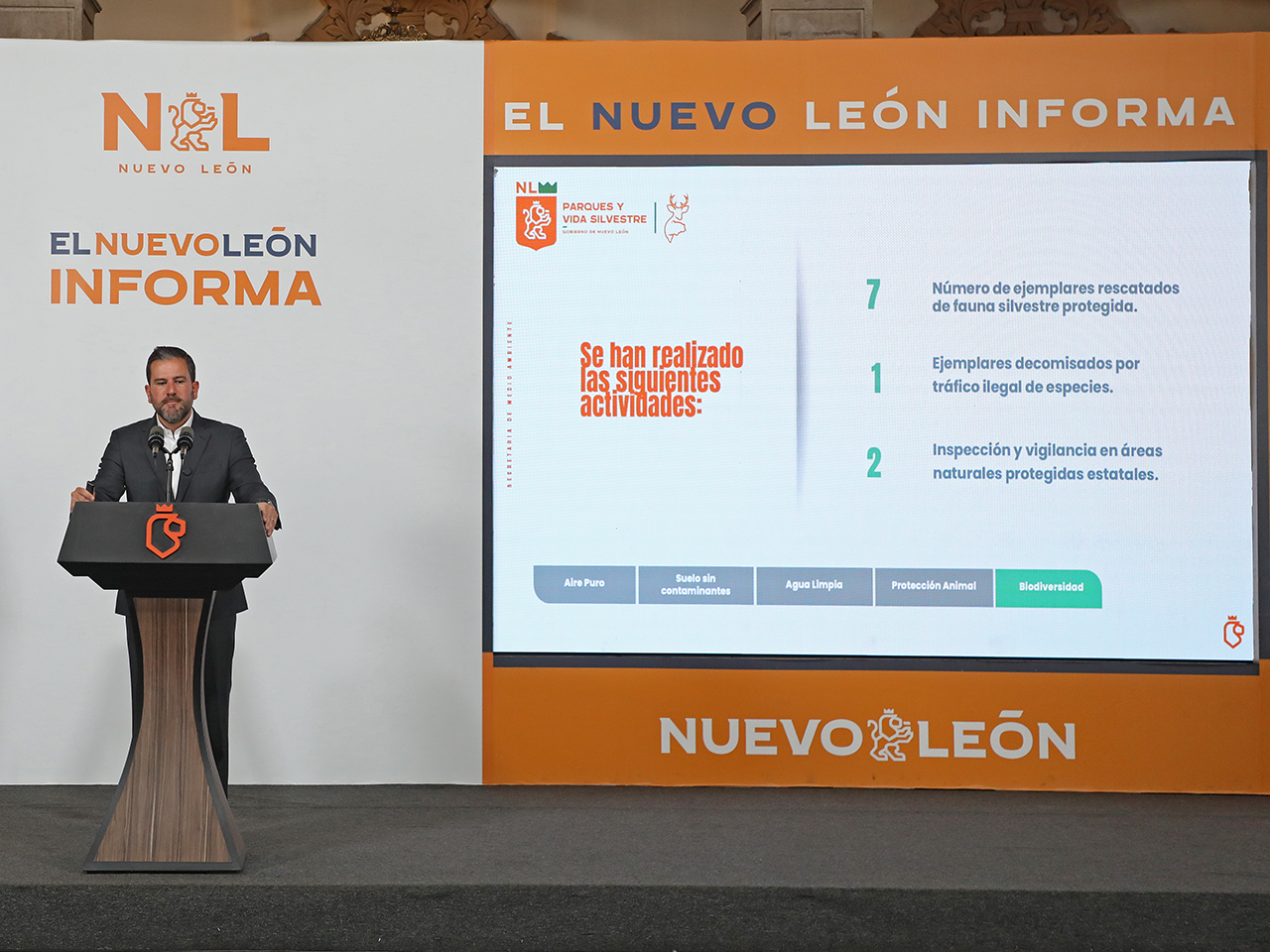 En el Nuevo León Informa el titular de la dependencia Raúl Lozano Caballero, quien estuvo acompañado por la directora de la Agencia para la Calidad del Aire, Armandina Valdez Cavazos, detalló los avances de las dependencias que conforman esta División como la Procuraduría Estatal de Medio Ambiente; Fuerza Civil; Simeprode; Instituto de Movilidad; Protección Civil; Parques y Vida Silvestre; Fideurb; Agua y Drenaje; Agencia de Calidad del Aire; y Agencia Estatal de Energía Renovable.
