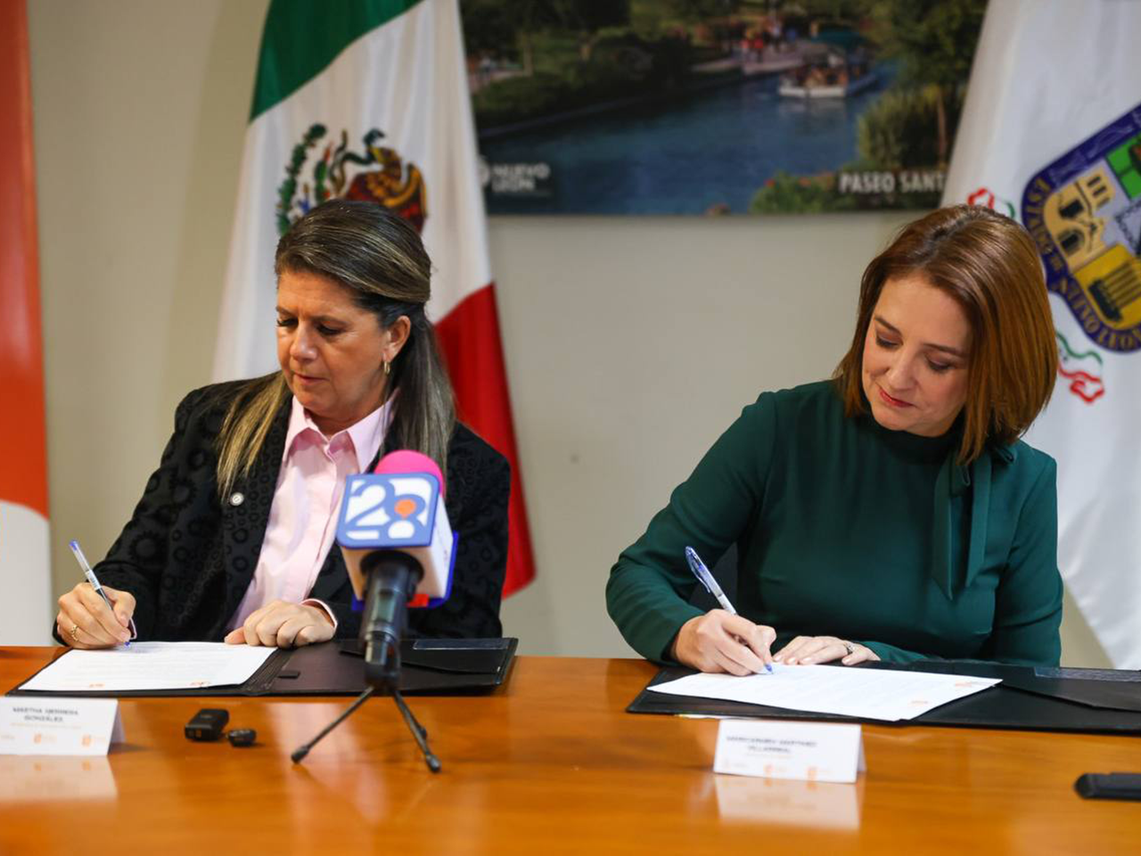 Monterrey, Nuevo León.- Para impulsar el desarrollo turístico incluyente e integrar estrategias de desarrollo social, equidad y crecimiento económico dentro de este sector, la Secretaría de Turismo de Nuevo León, encabezada por Maricarmen Martínez Villarreal, y la Secretaría de Igualdad e Inclusión, a cargo de Martha Herrera, firmaron un convenio de colaboración.