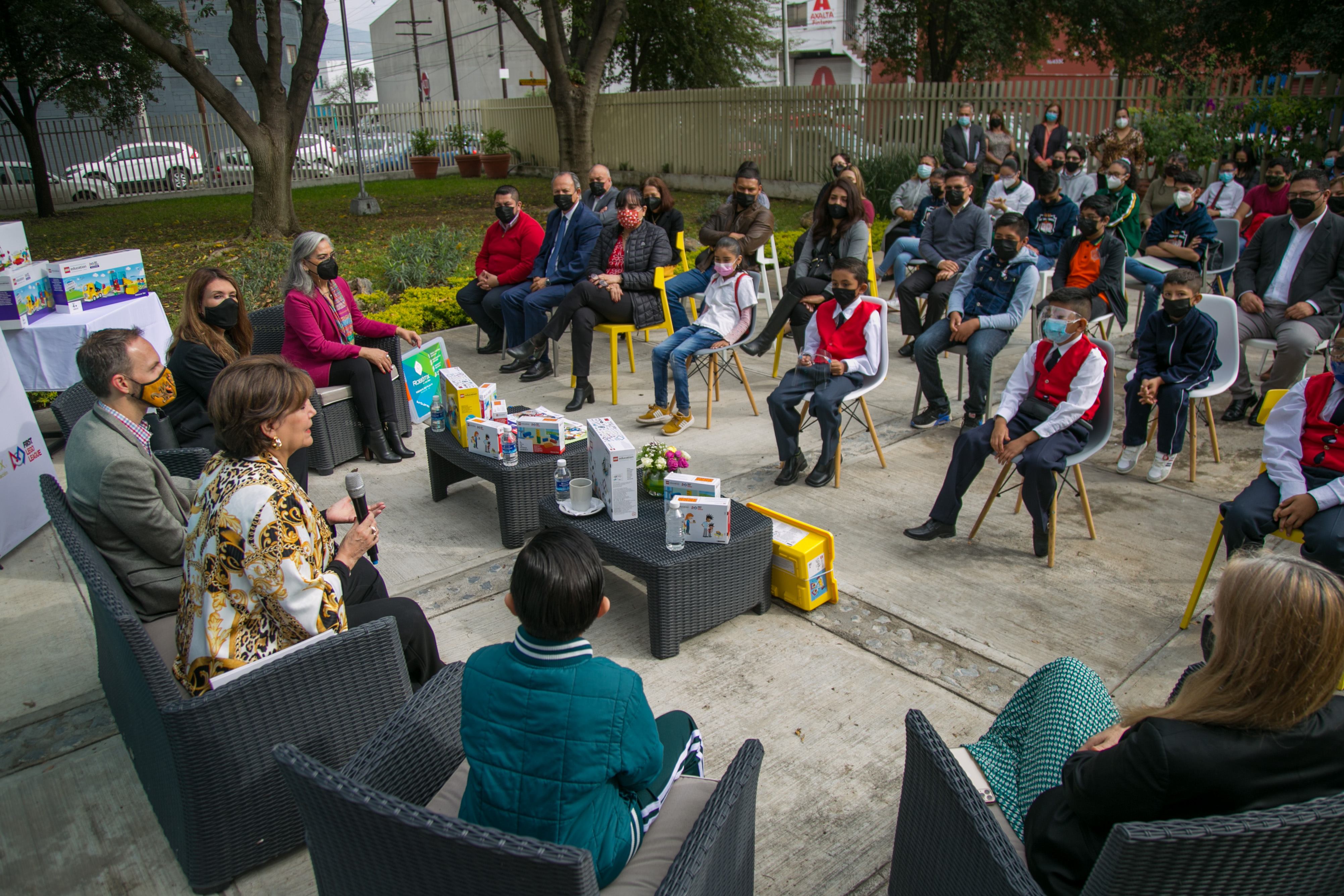 Durante el evento, de manera simbólica, se realizó la entrega de los materiales educativos a docentes y directivos de las escuelas beneficiadas. 48 de las 53 becas forman parte del programa FIRST LEGO League, programa educativo internacional, las otras 5 becas son del programa RobotiX in the Box.