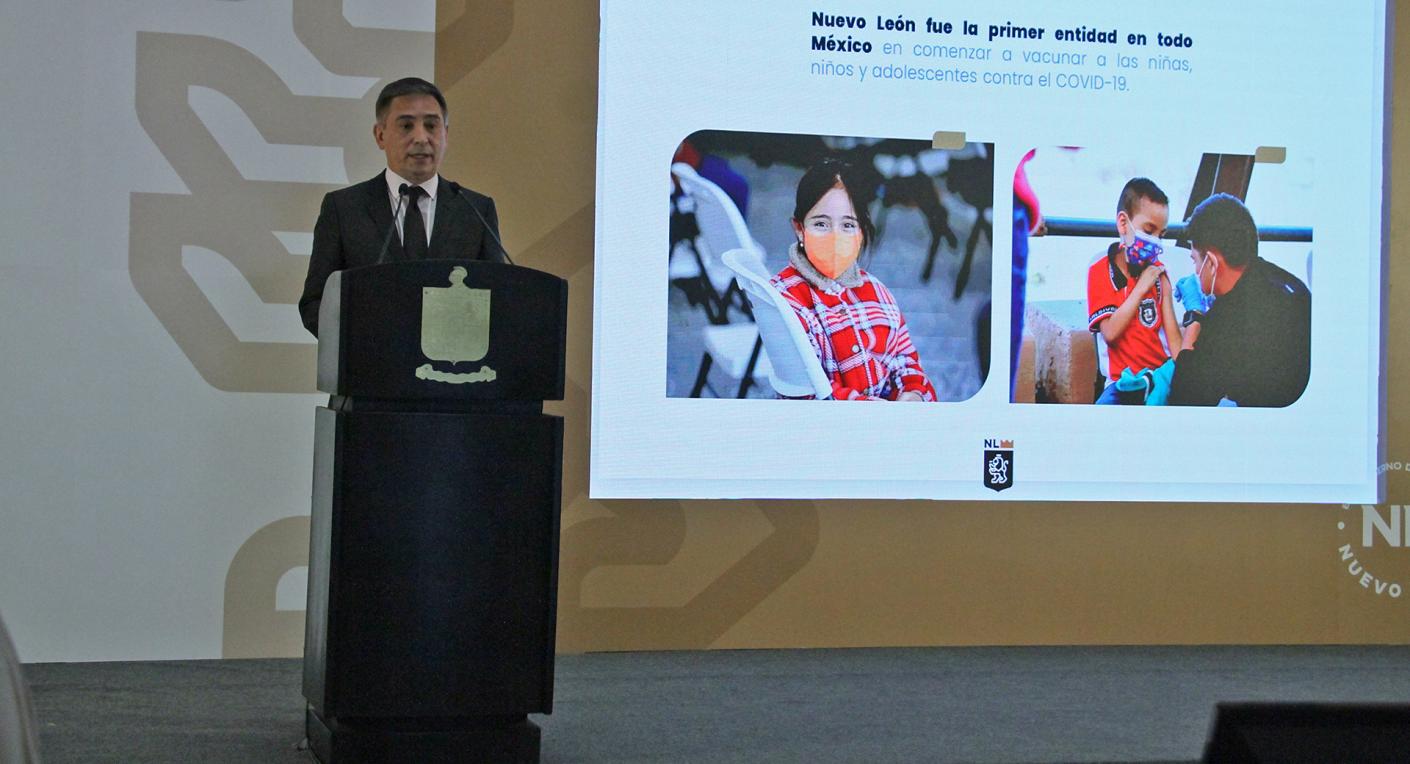 Fasci Zuazua recordó que Nuevo León fue la primera entidad del país que empezó a vacunar a sus niñas, niños y adolescentes, gracias a la colaboración del estado vecino de Texas, quienes han donado dichas dosis.