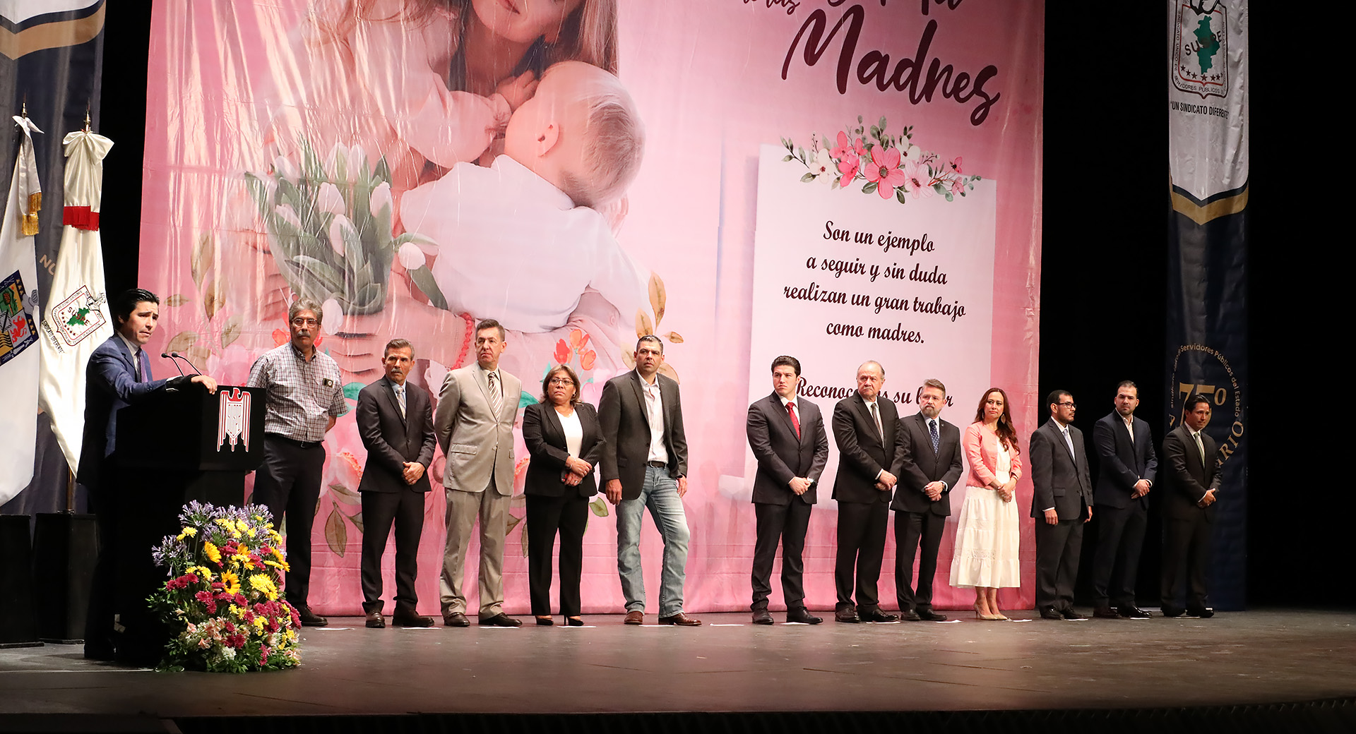 En el Teatro de la Ciudad y acompañado del dirigente estatal del Sindicato Único de Servidores Públicos del Estado (SUSPE), Ricardo Cavazos Balderas, así como de funcionarios estatales y representantes del Poder Judicial, Legislativo y de la Fiscalía estatal, el Gobernador encabezó el homenaje dedicado a las madres.