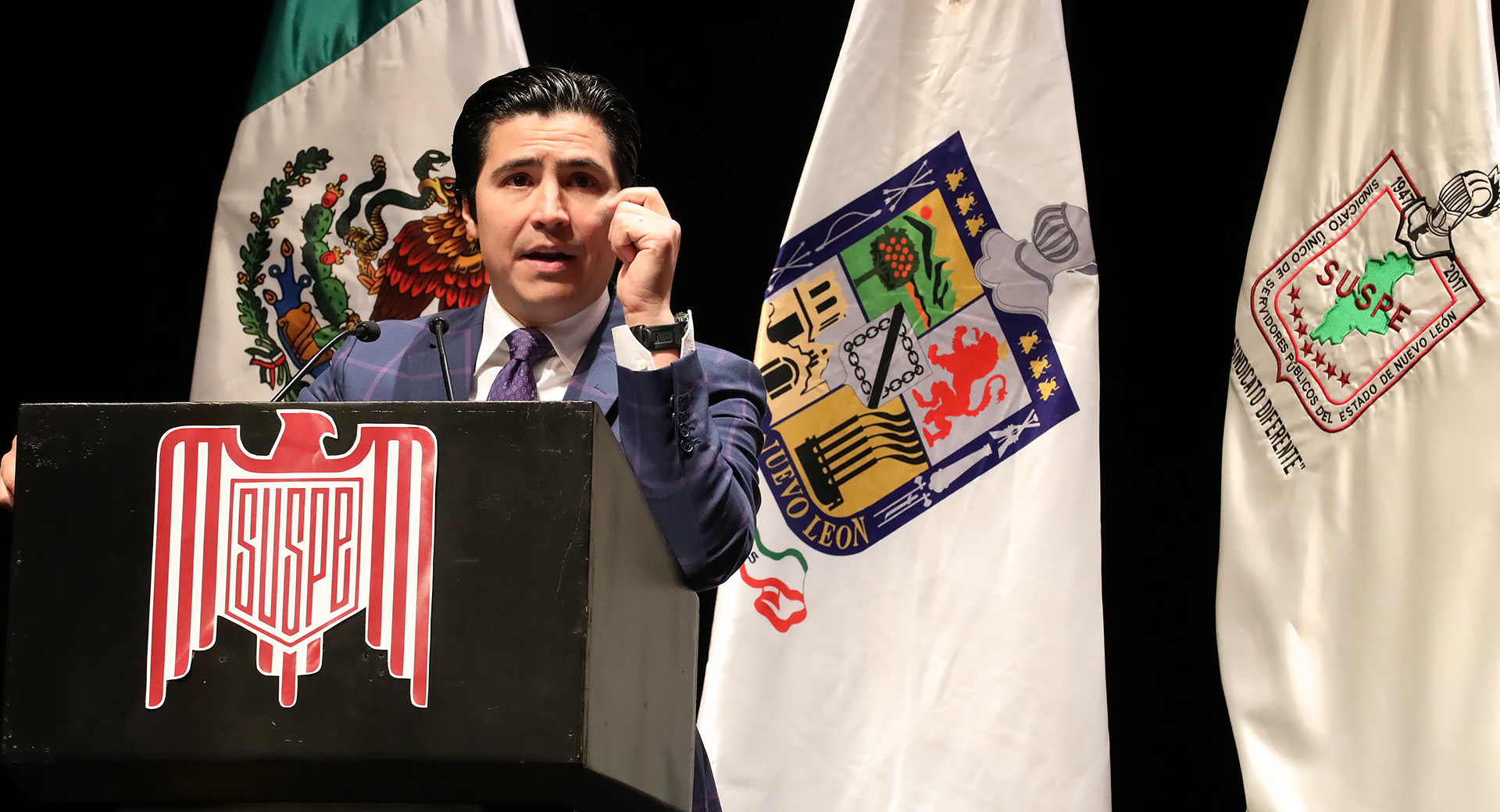 Además, a nombre de las trabajadoras del estado autoridades del SUSPE le entregaron al Gobernador un ramo de flores para su esposa Mariana Rodríguez Cantú, quien este año se estrenó como mamá al concebir a su hija Mariel.