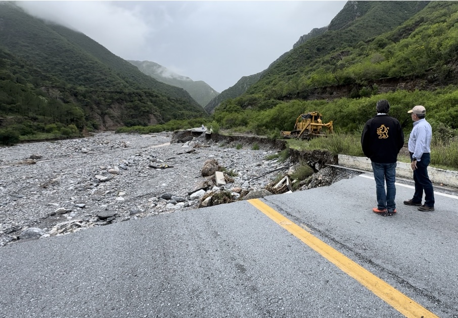 Desde la serranía de Iturbide, en el tramo Linares - Iturbide, donde se registraron los mayores daños, González precisó que se gestionó oportunamente el apoyo de la Secretaría de infraestructura, Comunicaciones y Transportes (SCT).