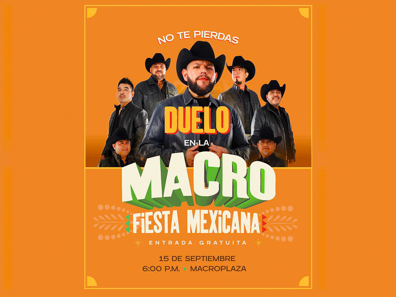 Porque en Nuevo León las fiestas se viven en grande, el esperado Grupo Duelo será el encargado de encender el ambiente desde las 7:00 de la tarde, preparando el escenario para que miles de neoleoneses den juntos el Grito de Independencia frente al Palacio de Gobierno.