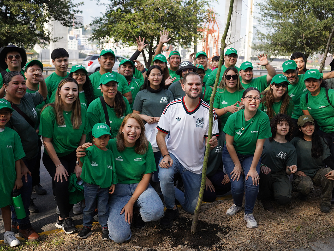 Monterrey, Nuevo León.- Como parte de la estrategia Ponte Nuevo, Ponte Mundial, banco Afirme, el Gobierno del Estado y la asociación civil Hábitats Resilientes participaron en una jornada de arborización sobre la Avenida Constitución, en Monterrey.