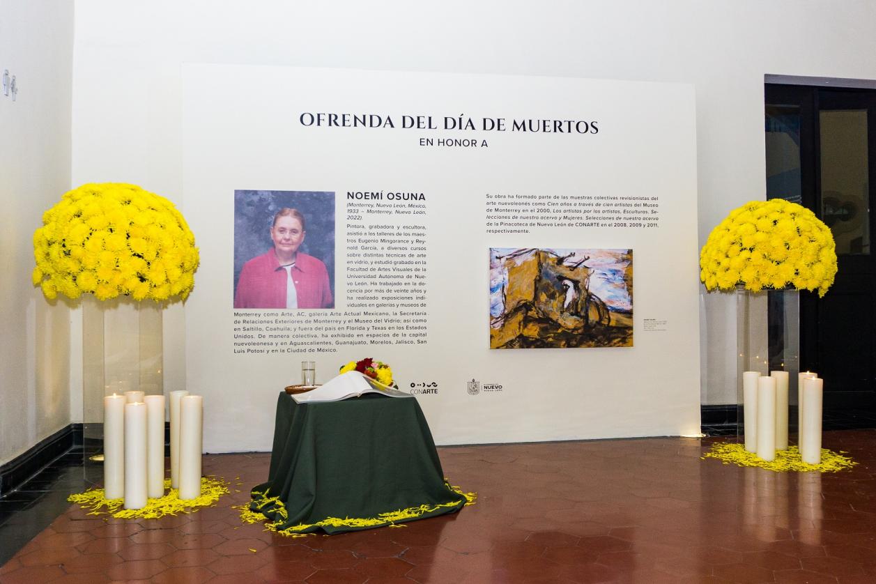 Como cada año la Pinacoteca de Nuevo León | CONARTE presenta su tradicional “Ofrenda de Día de Muertos”, este año en honor a la fallecida artista plástica Noemí Osuna.