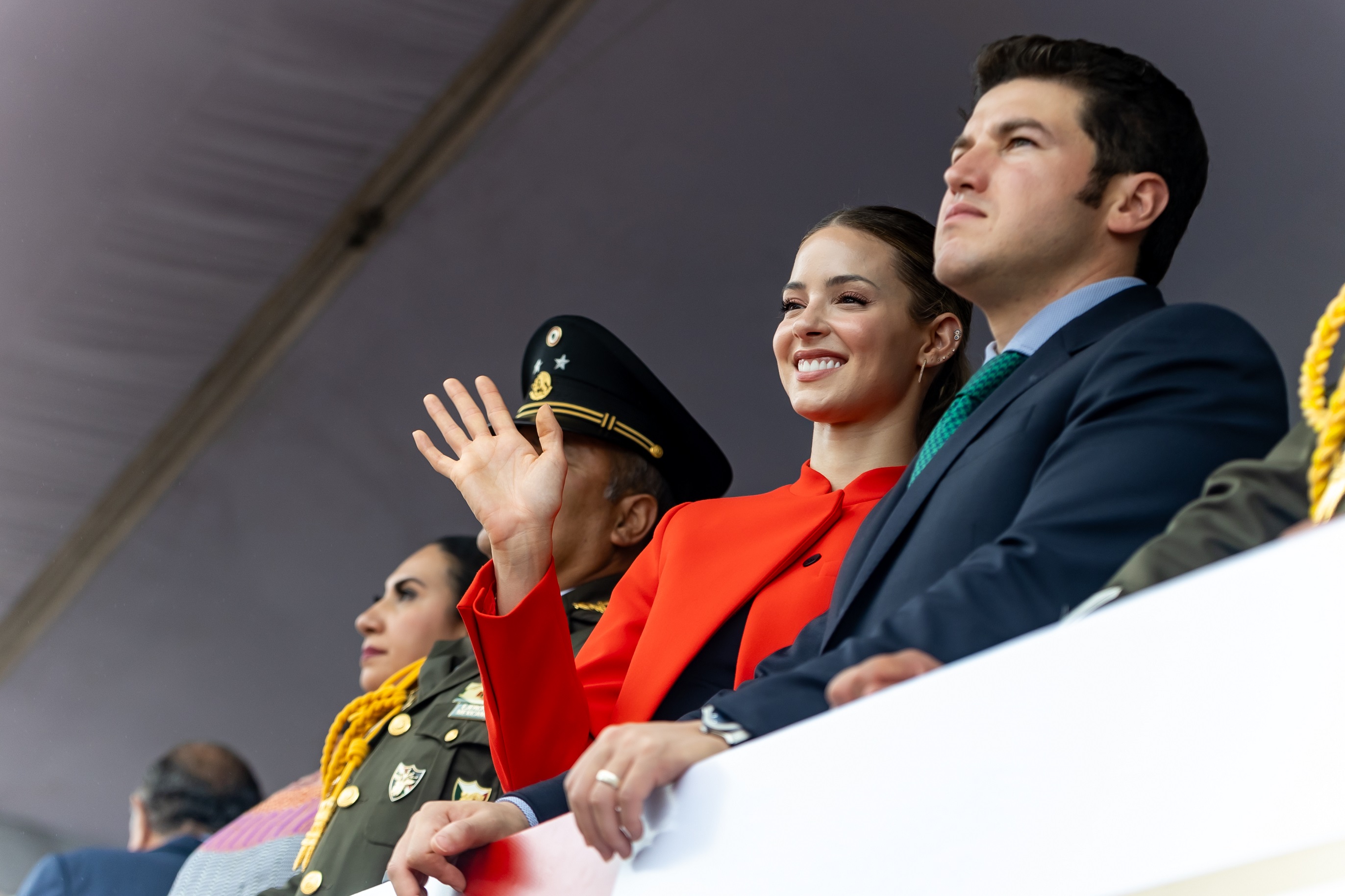 Ante cientos de ciudadanos congregados en la Explanada de los Héroes y acompañado de su esposa Mariana Rodríguez Cantú, el mandatario estatal, leyó el acta de la Independencia, con lo que dio inicio el Desfile Cívico Militar.