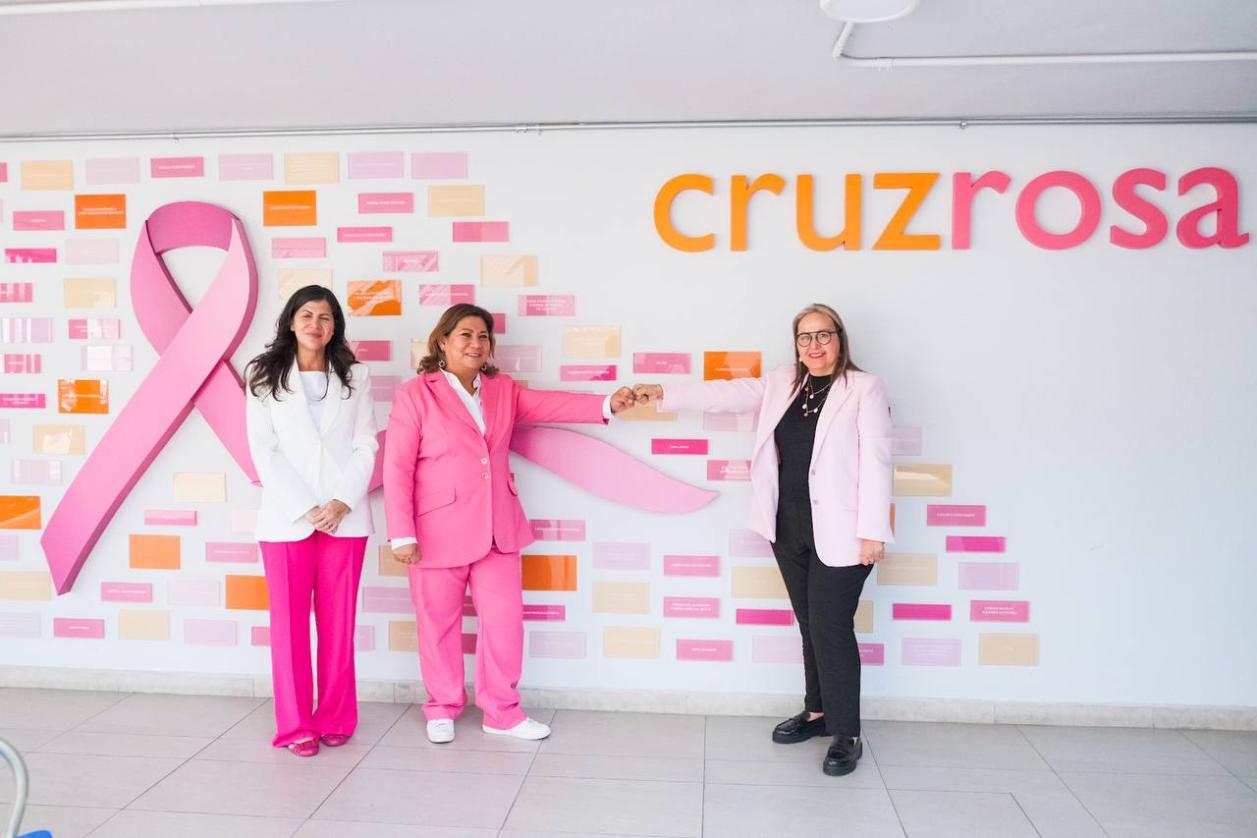 Encabezaron el evento realizado en las instalaciones de Cruz Rosa, Laura Paula López Sánchez, Presidenta Ejecutiva del Instituto Estatal de las Mujeres, Nicole Marie Saviñon Luttrell, Vicepresidenta del patronato de Cruz Rosa ABP, y Adriana Maribel Garza Treviño, Directora de Cruz Rosa ABP; así como mujeres sobrevivientes de cáncer y usuarias atendidas por la institución.
