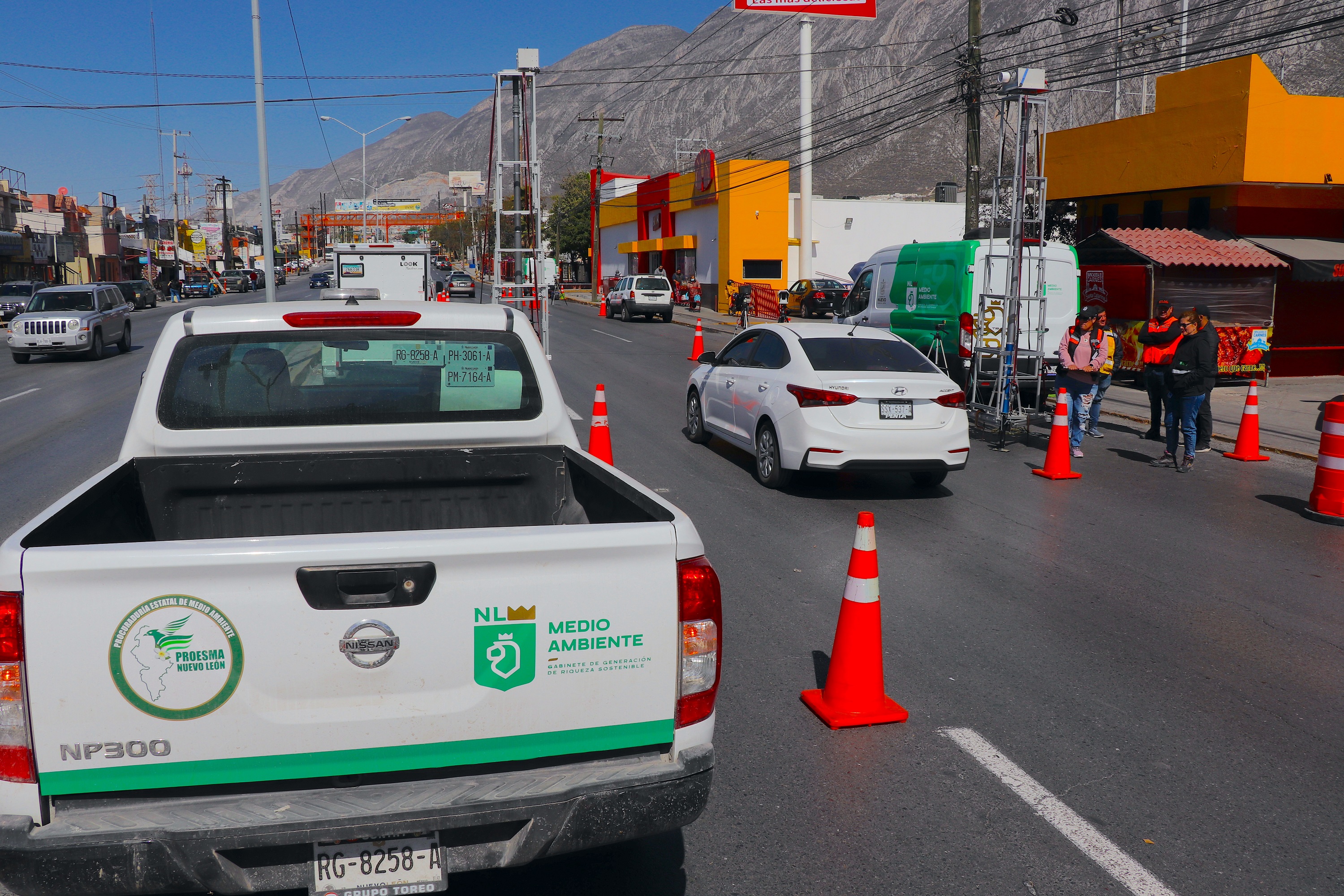 La Secretaría de Medio Ambiente, en coordinación con el Municipio de Santa Catarina, llevó a cabo un operativo en la calle Cuauhtémoc de la colonia Villa Los Portales, para detectar vehículos que contaminan el ambiente.