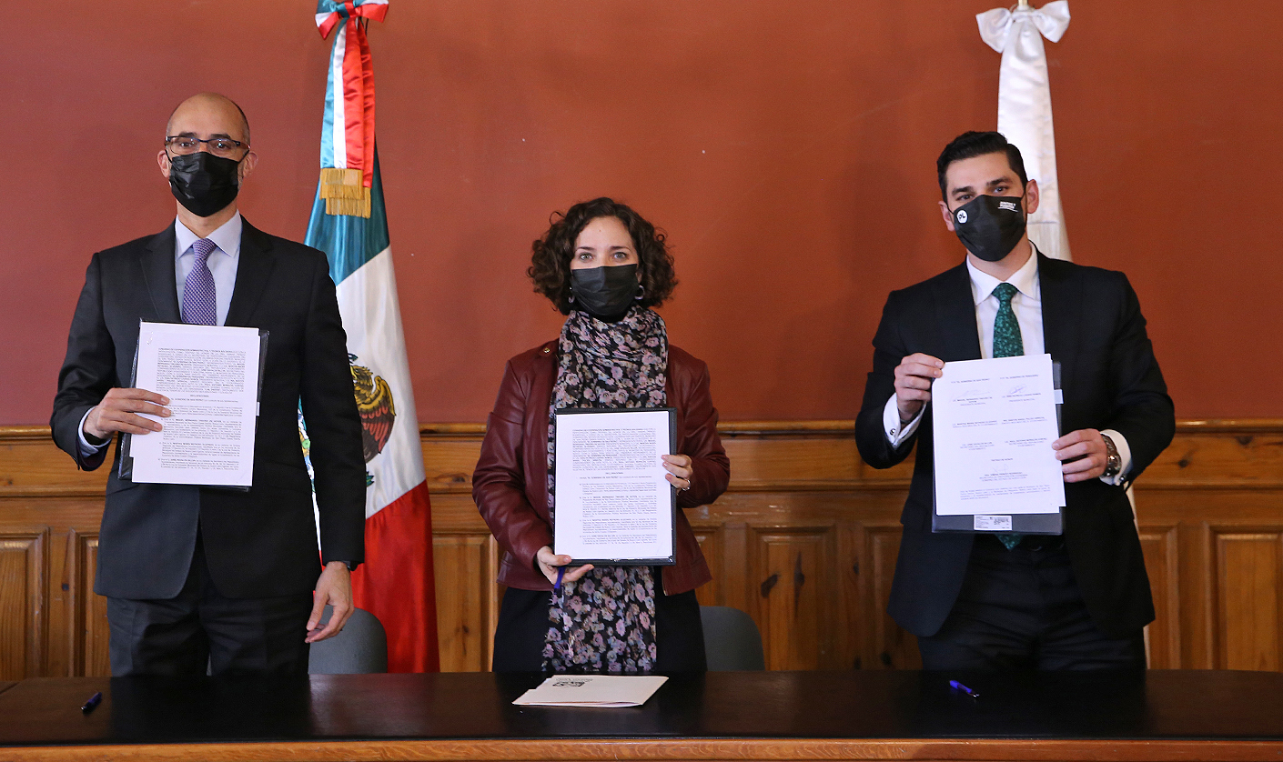 Ximena Peredo Rodríguez, titular de la Secretaría de Participación Ciudadana (SPC), fue la encargada de firmar como testigo de honor en el acuerdo entre los alcaldes de Pesquería y San Pedro, Patricio Lozano Ramos y Miguel Treviño de Hoyos, respectivamente.
