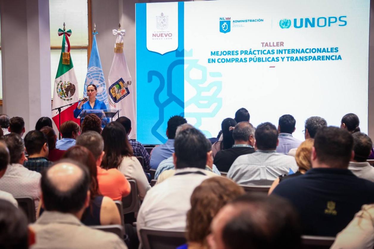 Para modernizar y fortalecer los procesos de adquisición del Gobierno de Nuevo León, expertos de la Oficina de las Naciones Unidas de Servicios para Proyectos (UNOPS) impartieron el taller “Mejores Prácticas Internacionales en Compras Públicas y Transparencia”, a colaboradoras y colaboradores estatales responsables del área en sus dependencias.