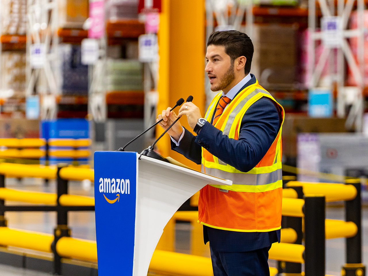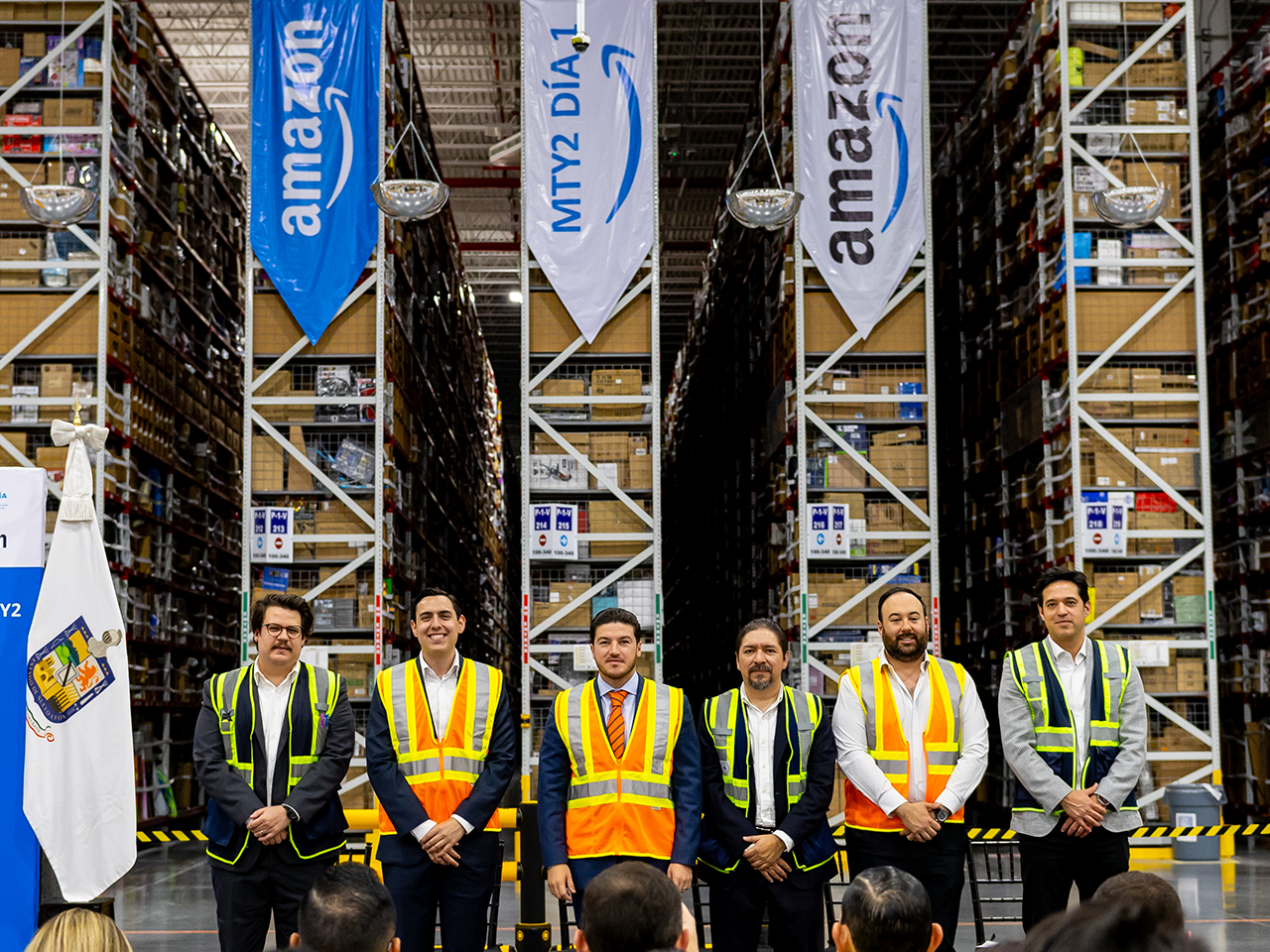 En el evento también estuvieron acompañando el director regional de Amazon, Jesús Elizondo; el alcalde de Apodaca, César Garza Arredondo, y el encargado del despacho de la Secretaría de Economía, Emmanuel Loo.