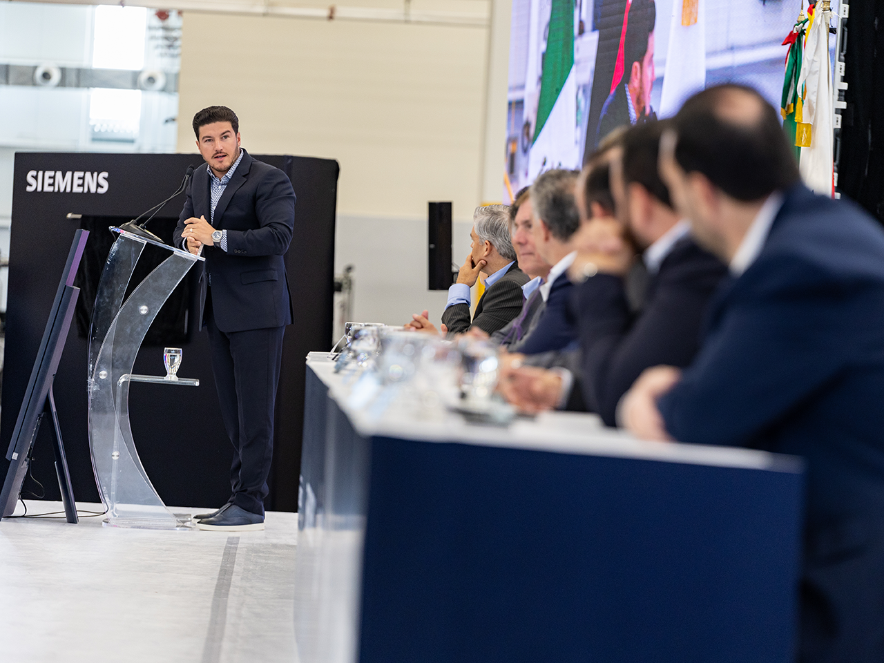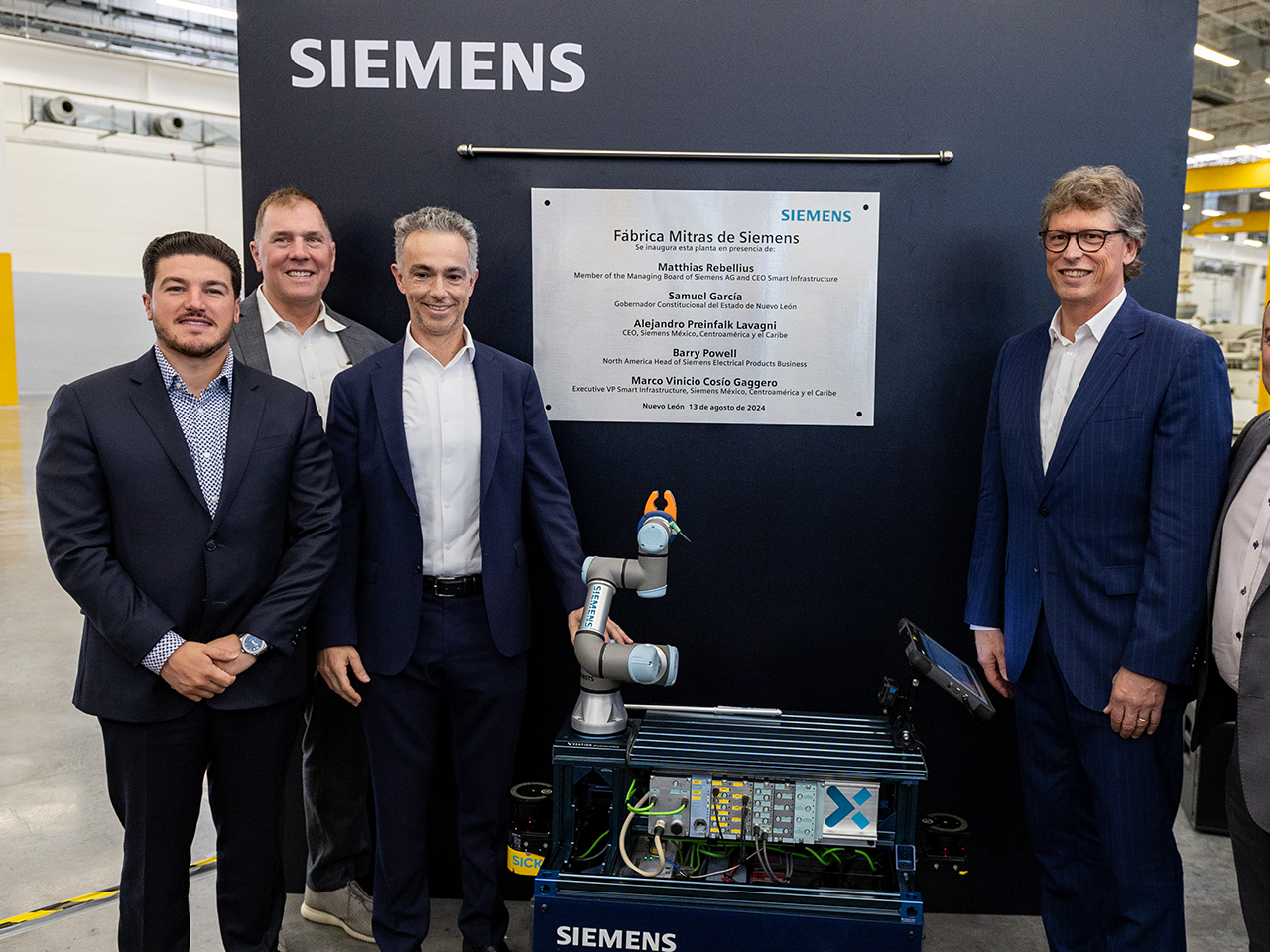 En el evento también estuvieron presentes Emmanuel Loo, subsecretario de Inversión; Federico Rojas Veloquio, Secretario del Trabajo; Marco Cosío, VP de Smart Infrastructure; Matthias Rebellius, CEO de Smart Infrastructure y miembro del Managing Board; Barry Powell, North America Head of Siemens Electrical Products Business.