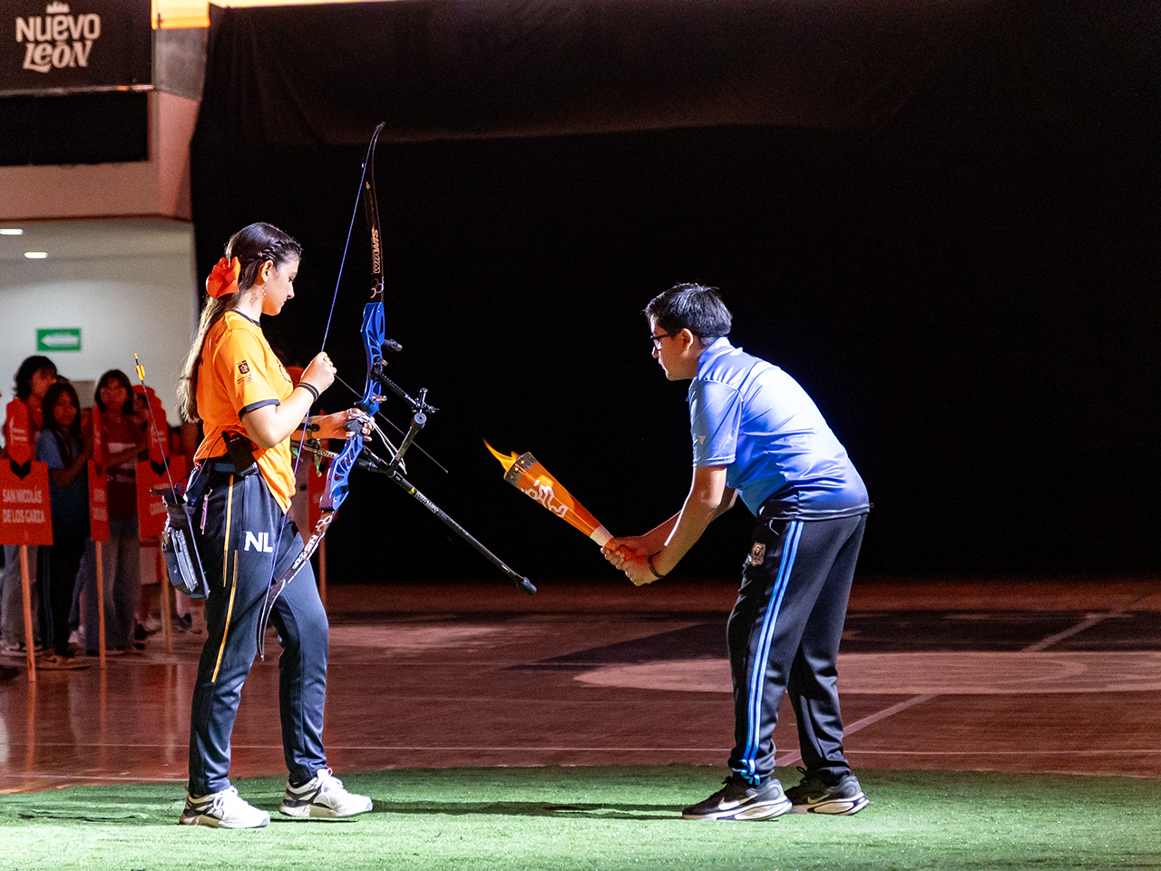 En una emotiva e innovadora ceremonia, la arquera Laura María Alanís Madrigal, dio muestras de su preparación al encender el pebetero marcando el inicio de las Olimpiadas y Paralimpiadas Nuevo León 2025.
