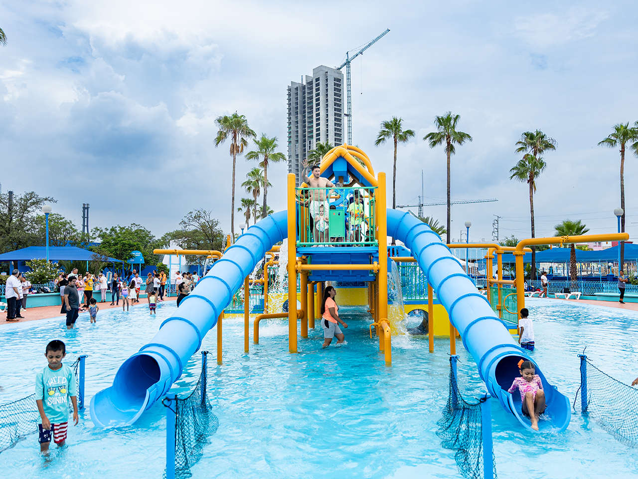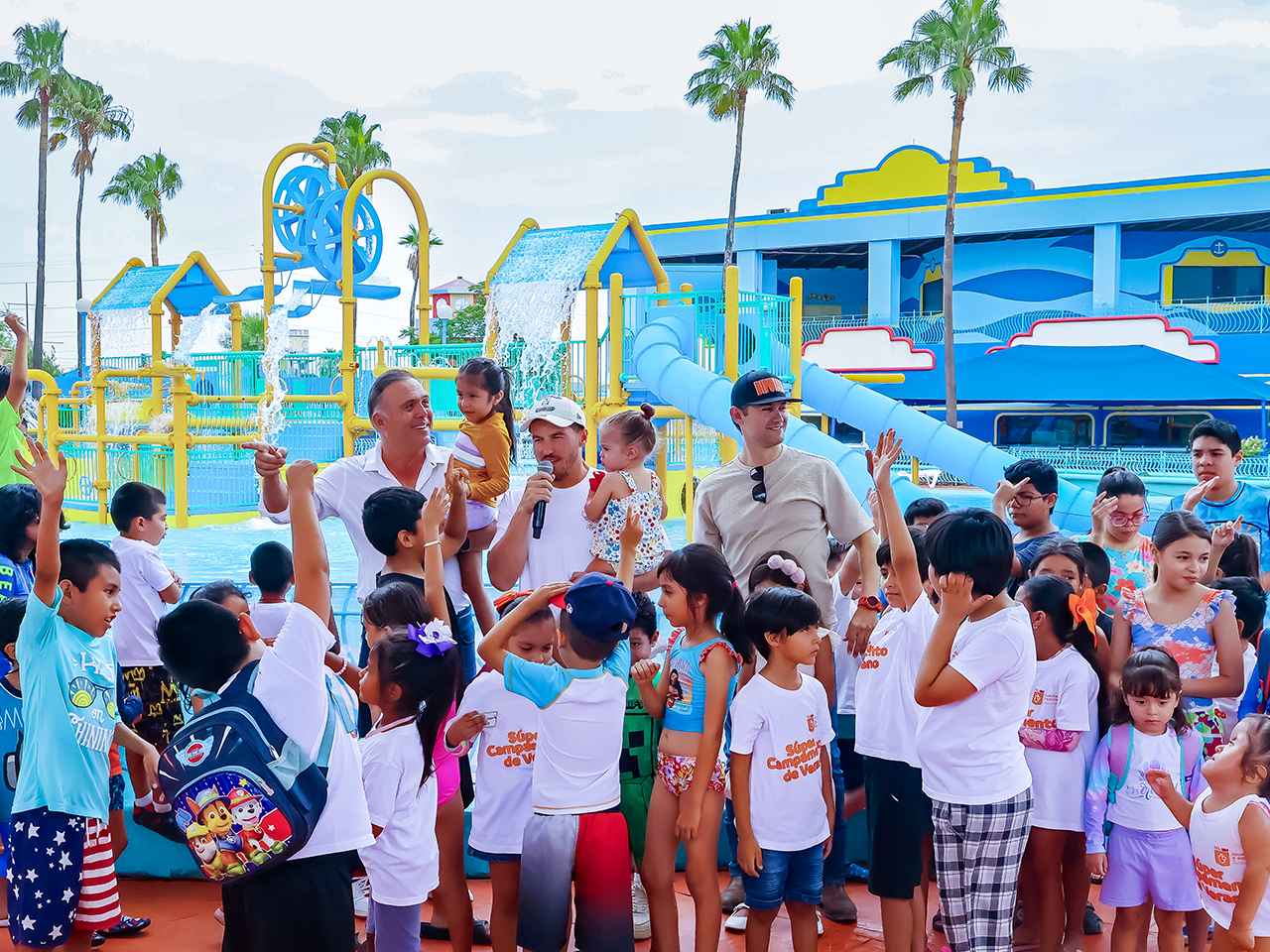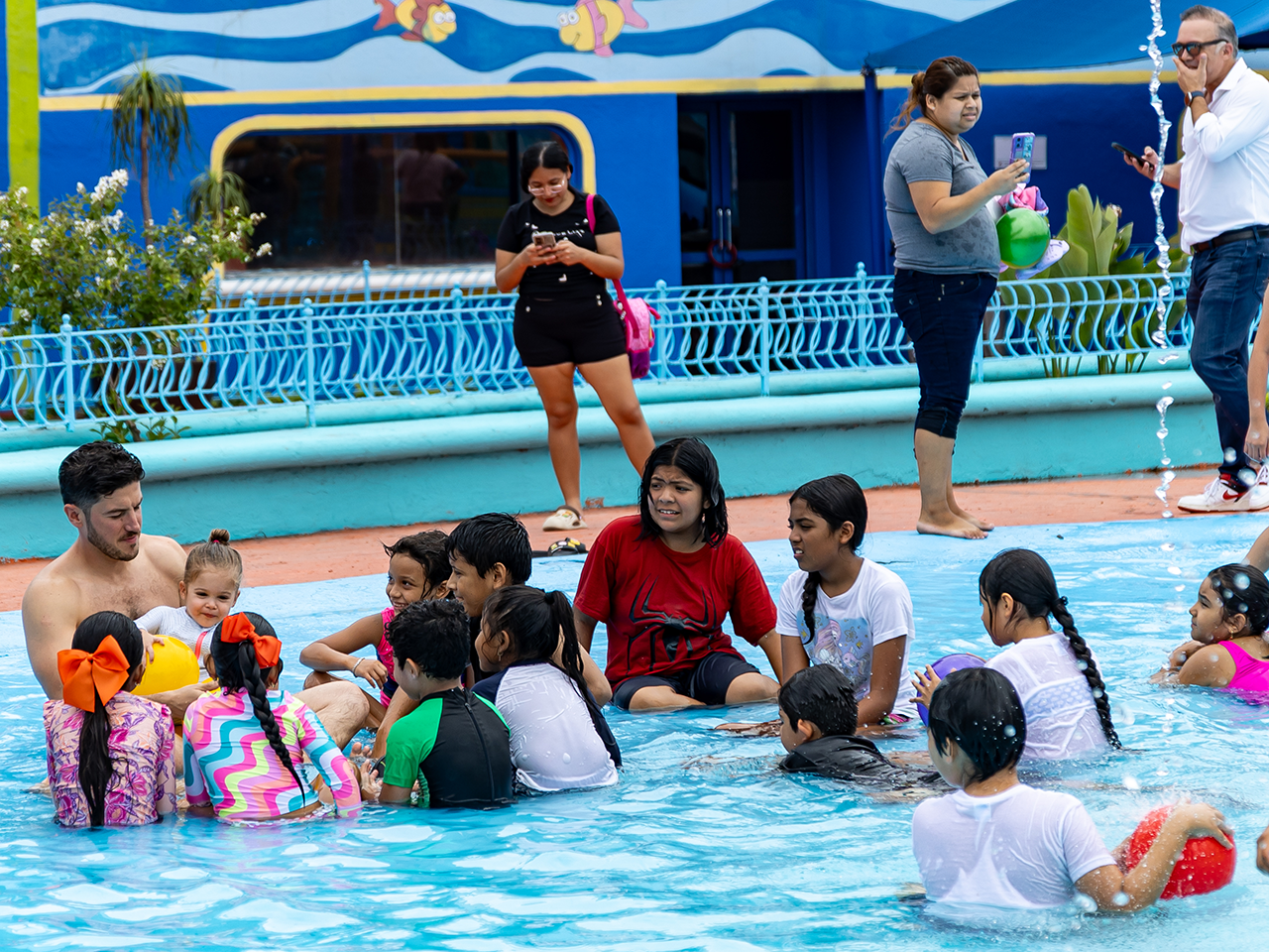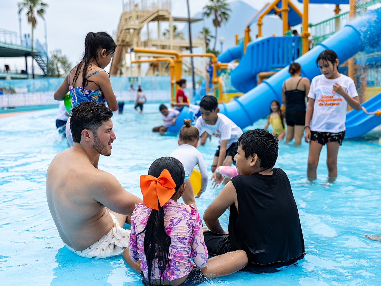 “Son cuatro albercas, son más de 5 mil metros cuadrados de alberca tiene toda la seguridad, hay salvavidas, hay equipos de primer nivel para el tratamiento del agua, y sobre todo tienen muchos toboganes y muchas áreas para que los niños puedan jugar y divertirse”, agregó.