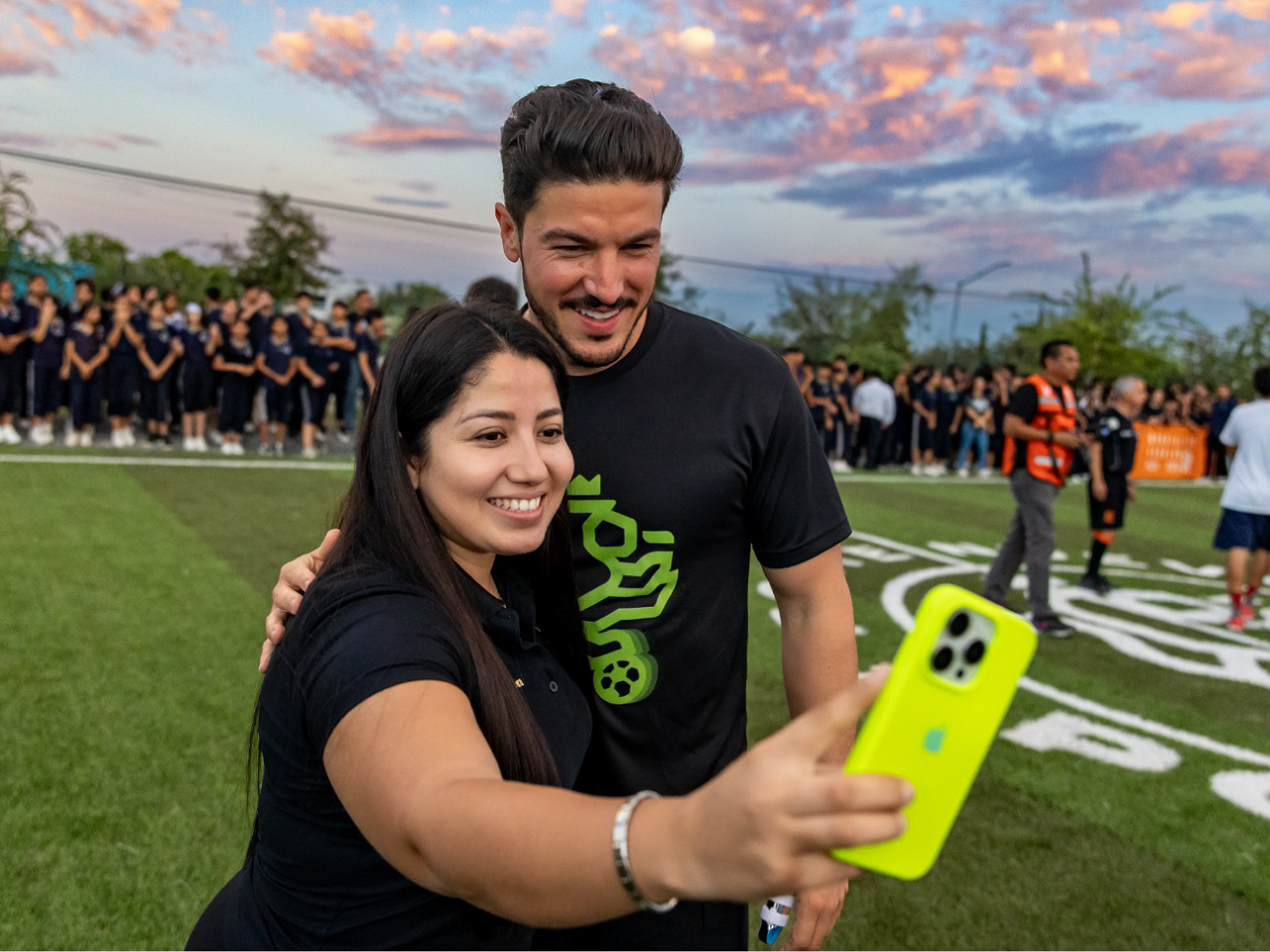 En el marco del programa "PONTE NUEVO, PONTE MUNDIAL", el mandatario estatal, en compañía del alcalde de El Carmen, Gerardo de la Maza y Melody Falcó, Titular del INDE, convivió con alumnos, maestros, directivos y funcionarios en las tradicionales "Cascaritas del Mundial".