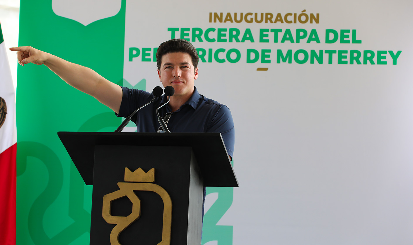 El Gobernador Samuel Alejandro García Sepúlveda encabezó este domingo la inauguración del Periférico del Área Metropolitana de Monterrey, la primera nueva carretera construida en 30 años, que ayudará a liberar todo el transporte de carga que no tiene como destino la Ciudad.