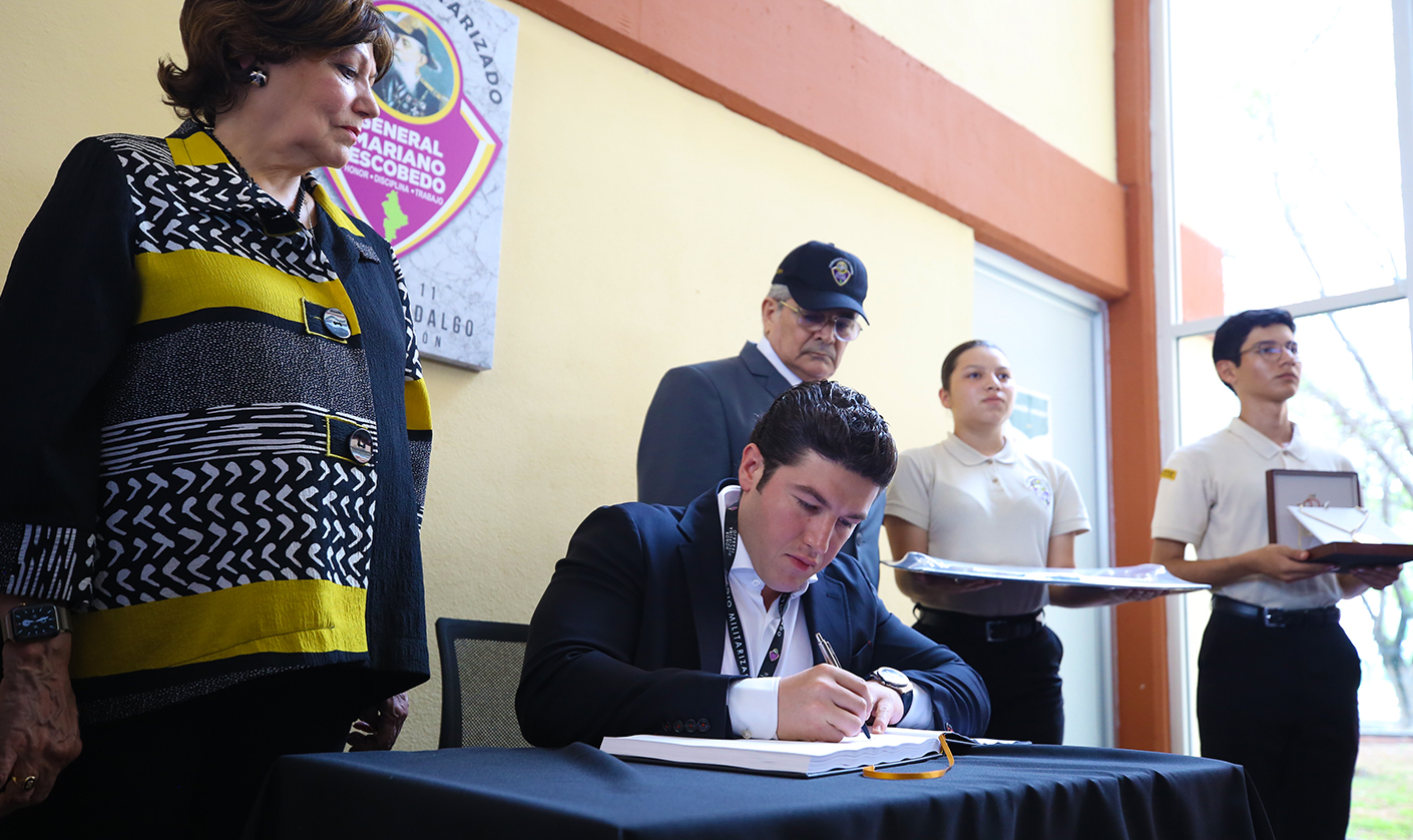 Con una inversión superior a los 35 millones de pesos en recursos estatales, el Gobernador Samuel Alejandro García Sepúlveda inauguró este miércoles el Colegio de Bachilleres Militarizado “Gral. Mariano Escobedo” Plantel Sabinas Hidalgo.