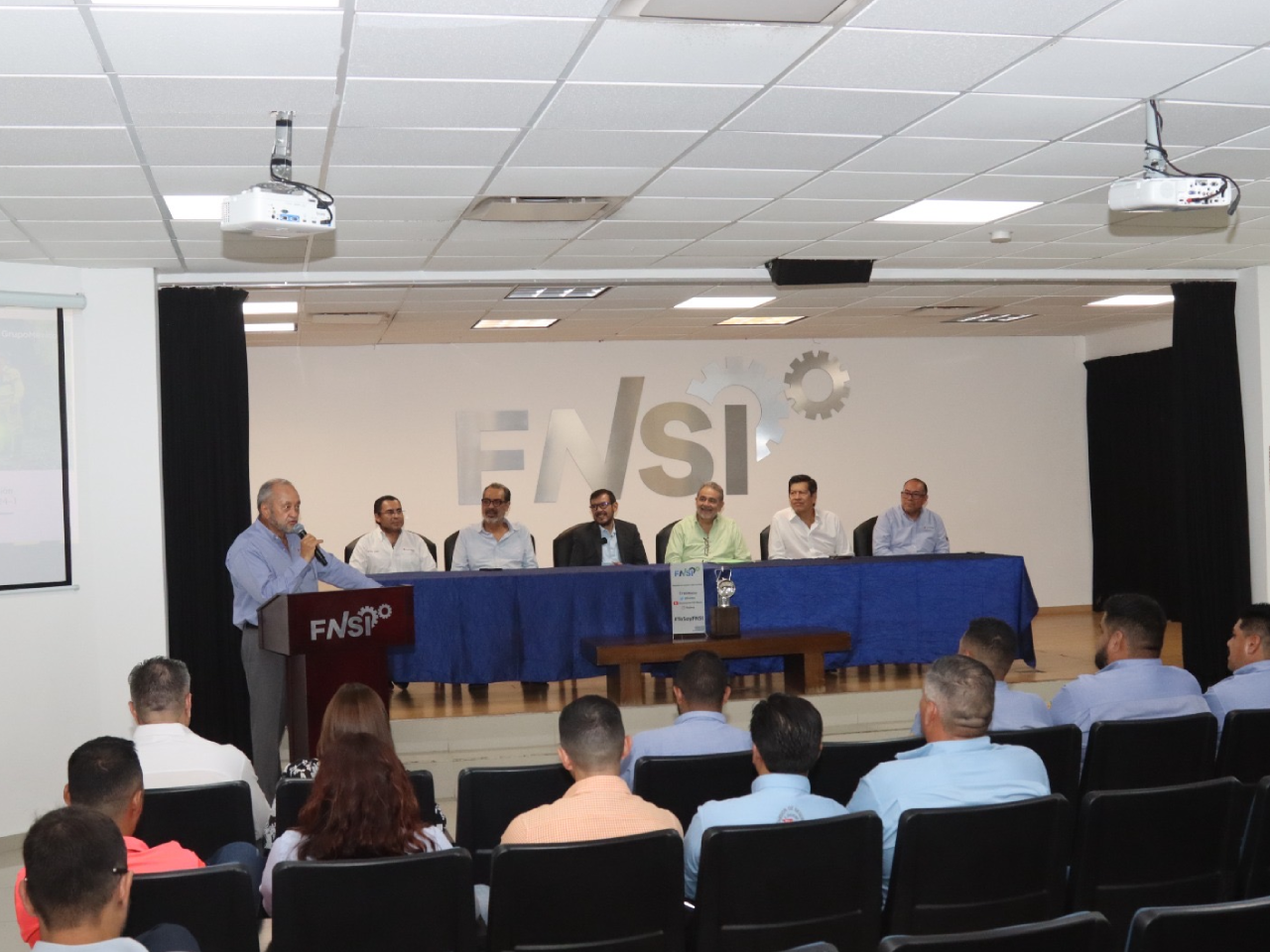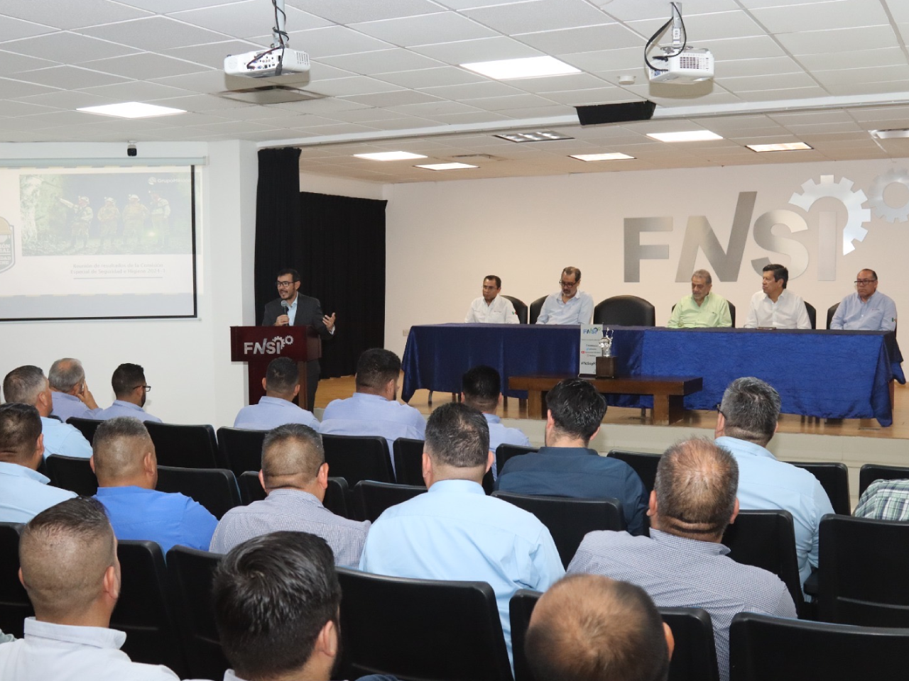 Para la inauguración de este panel, que por primera vez se realiza en la entidad, estuvieron presentes el Secretario General del FNSI, Felipe Vázquez Tovar, Enrique Valverde, representante de la empresa Industrial Minera México, y el Secretario del Trabajo Federico Rojas Veloquio, quien recalcó el compromiso que tiene encomendado por el Gobernador Samuel García de reducir los situaciones de riesgo en los entornos laborales.